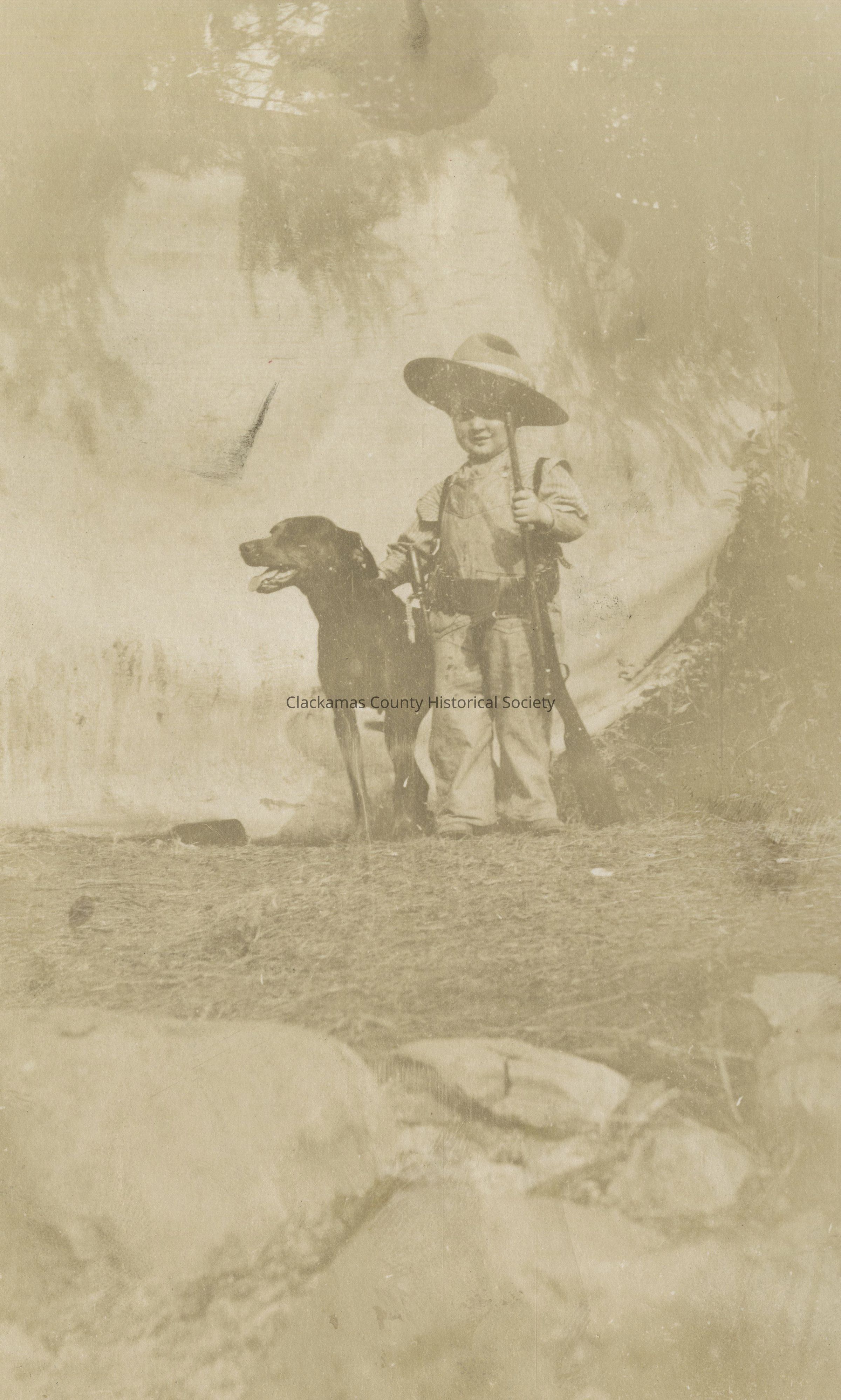 Unknown Child Dressed as a Cowboy with Gun and Dog