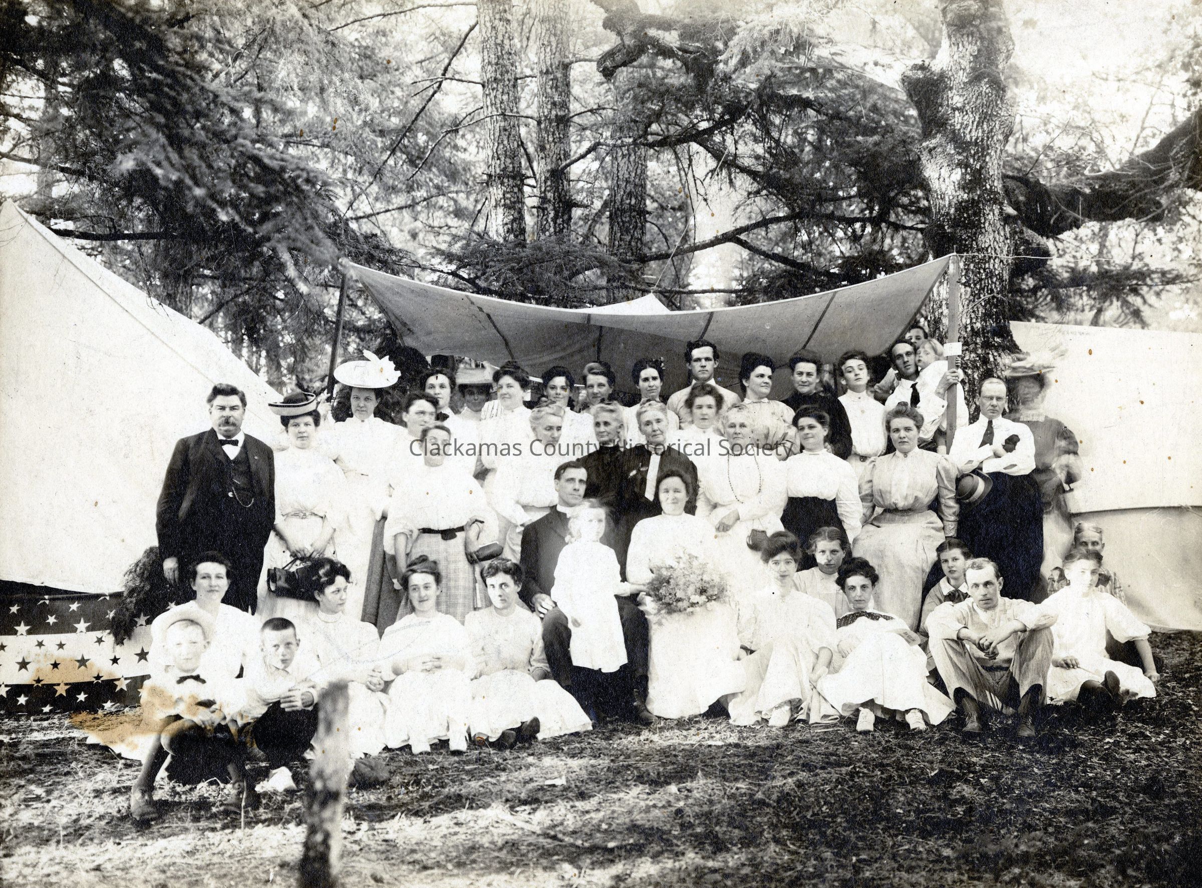 S.P. Davis Photo 1908 gift of H.C. Stevens Group in front of a tent F.0375.005362