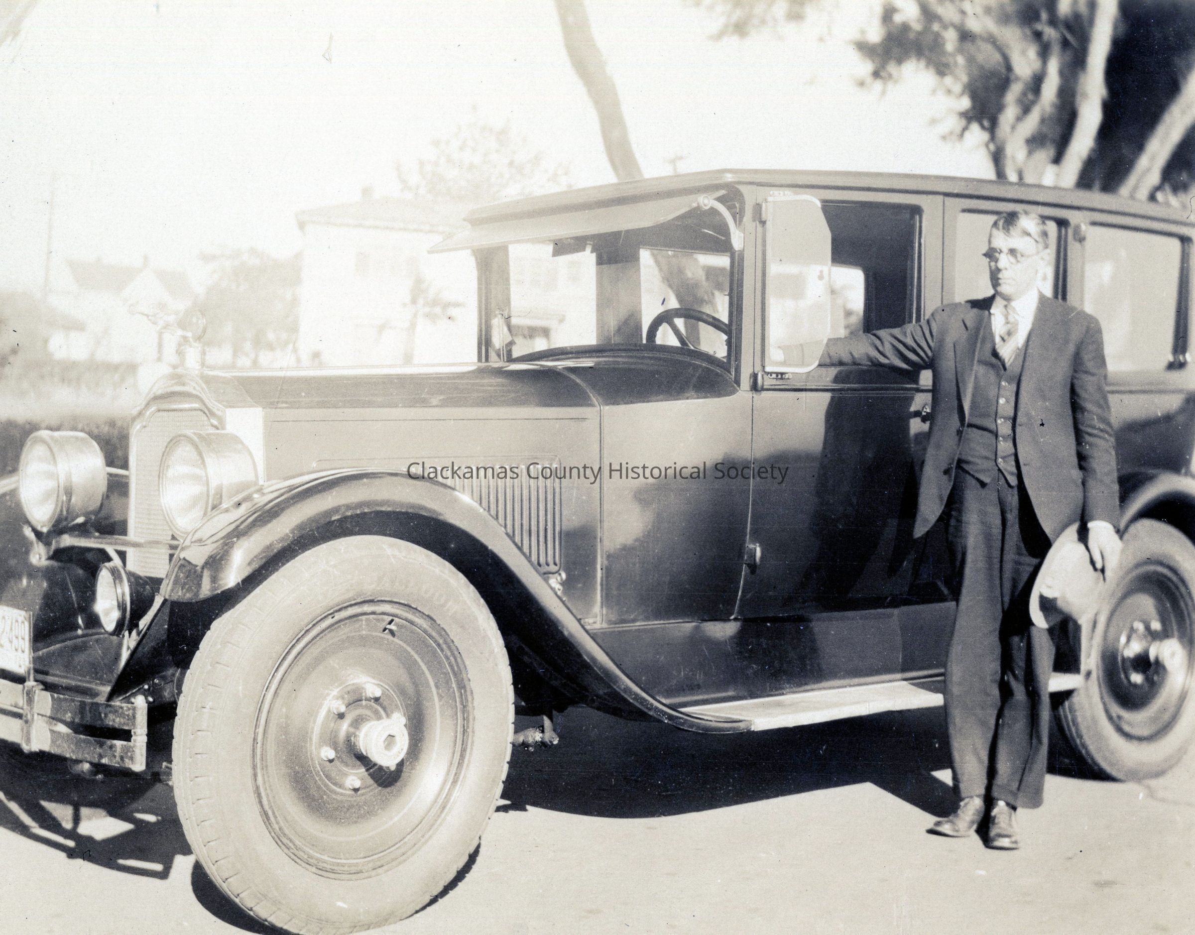 Unknown Woman Standing next to a Model A Roadster Automobile