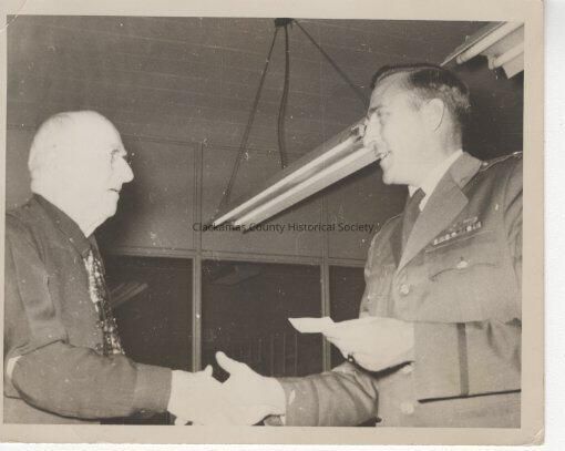 Two men shaking hands - One man wearing a Military Uniform 1956 Cross Collection P-1025.000161