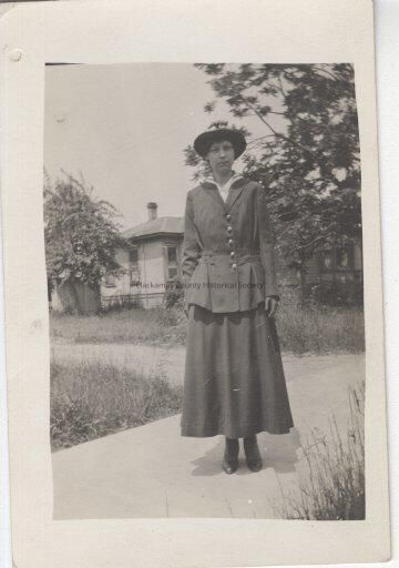 Woman standing in front of a house Post card
