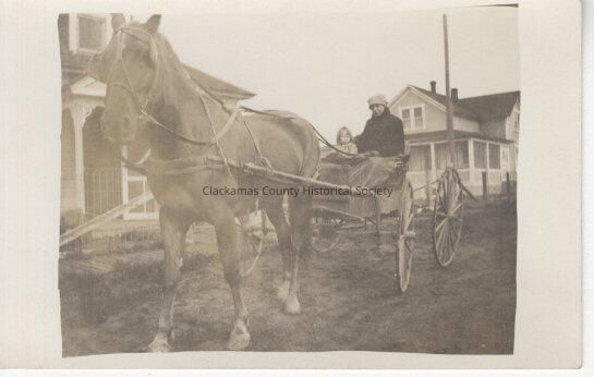 Horse, Wagon, Lady, & Child Cross coll Post card