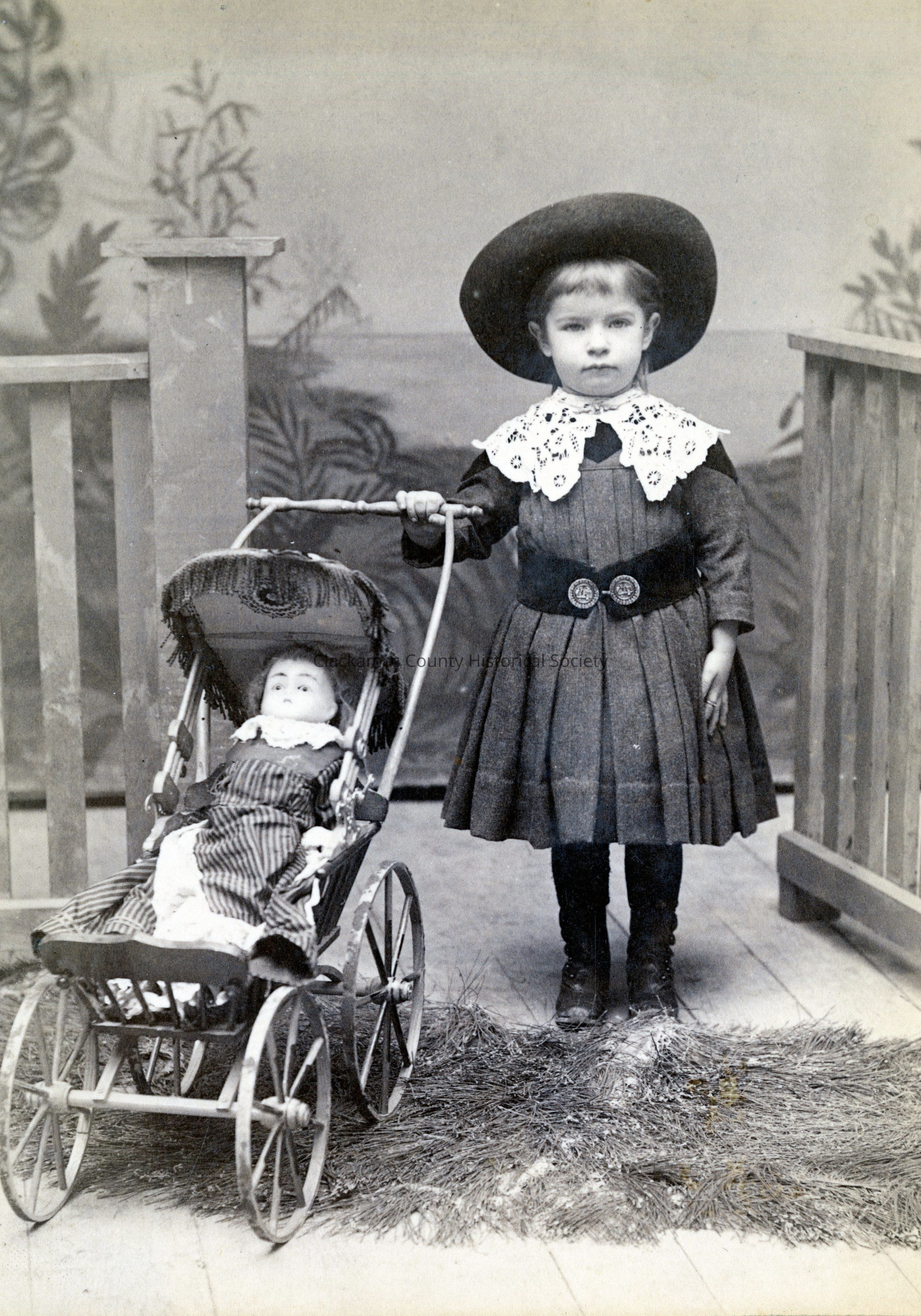 Unknown Young Girl - Studio Portrait - With Doll in Stroller