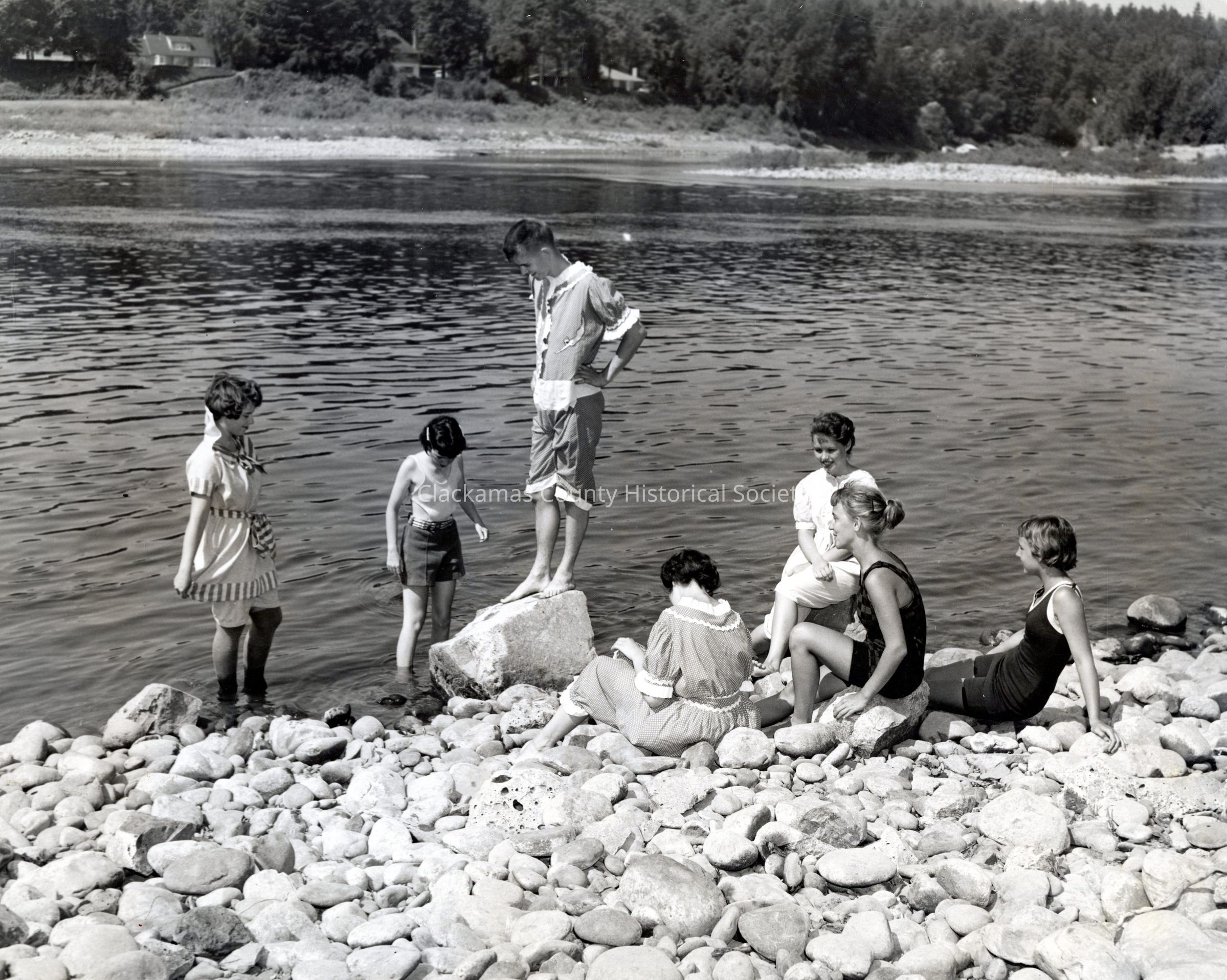 Unknown Young People - On Rocky Beach in Various Styles of SwimsuitsEntry/Object ID