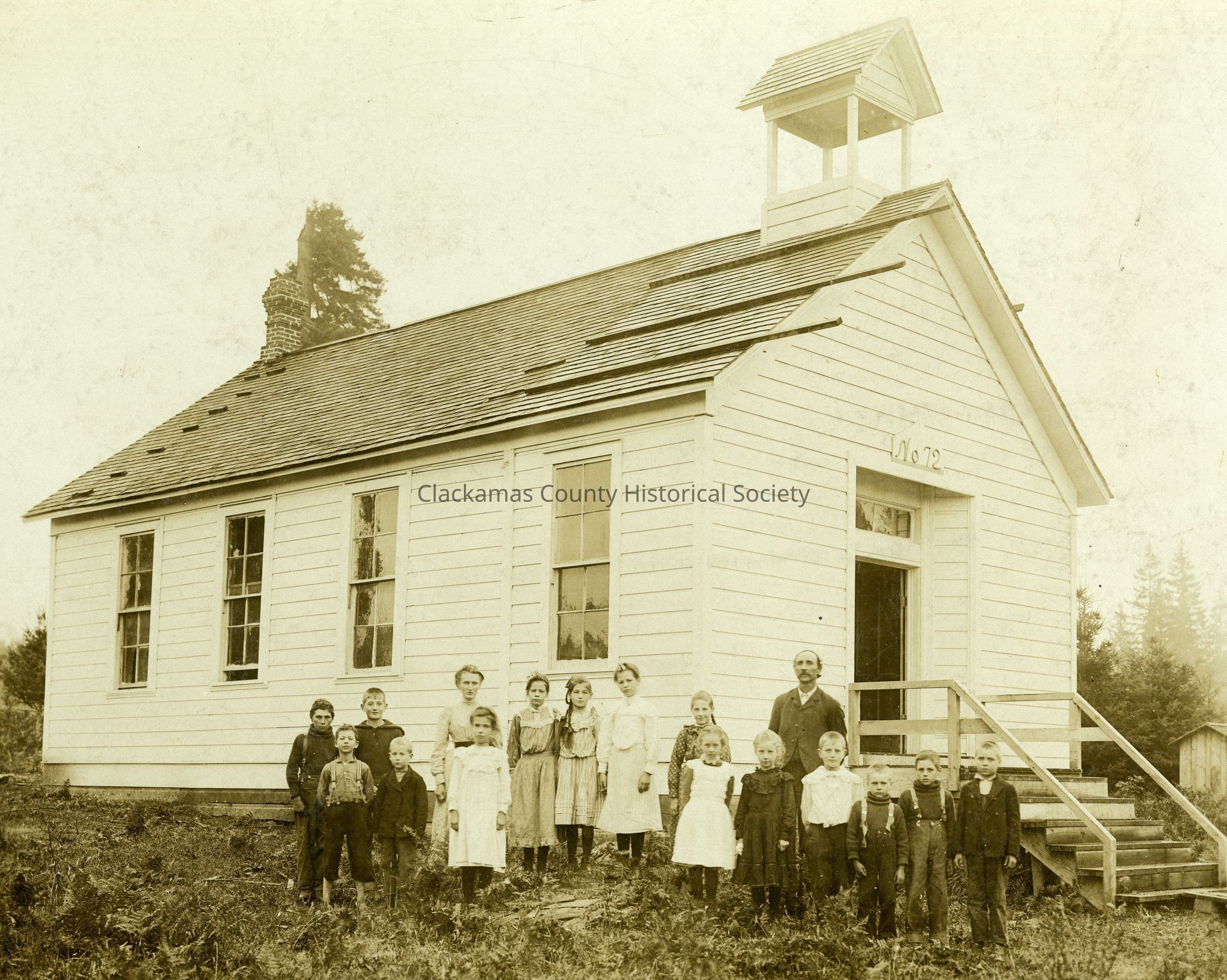 Students Upper Colton School Nonreadable writing on back in pencil on black background Before 1903