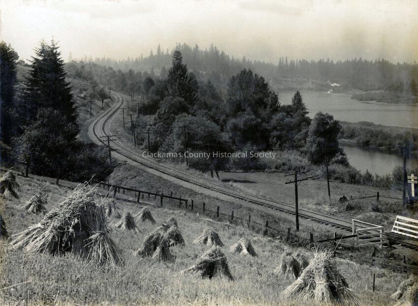 Wheat field, Southern Pacific Railroad, Willamette River and the Steamer "Oregona" near New Era.Made/Created