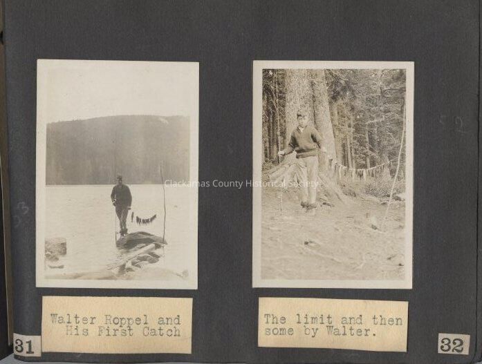 Images from album "The Second Annual Wahtum Lake Outing, Troop No.2, Oregon City, OR June 14-27, 1926 Walter Roppel and fish