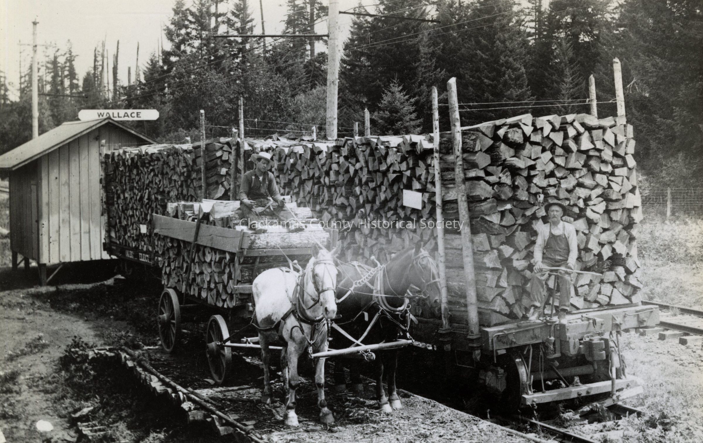 Wallace Station, Loading cord wood on Oregon Electric Railroad cars 1910