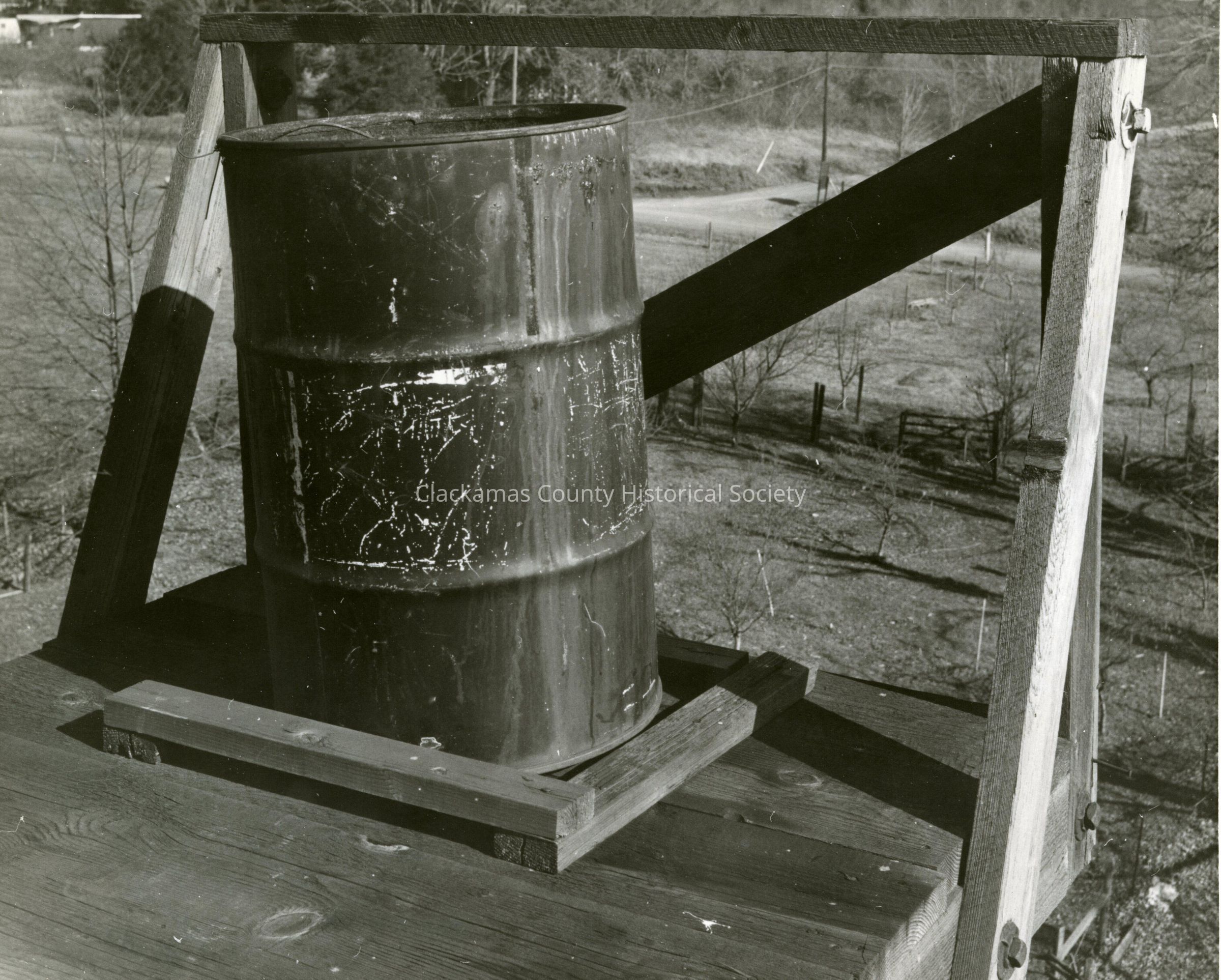 Water Barrell on Trestle between 11th and 15th Streets.Made/Created