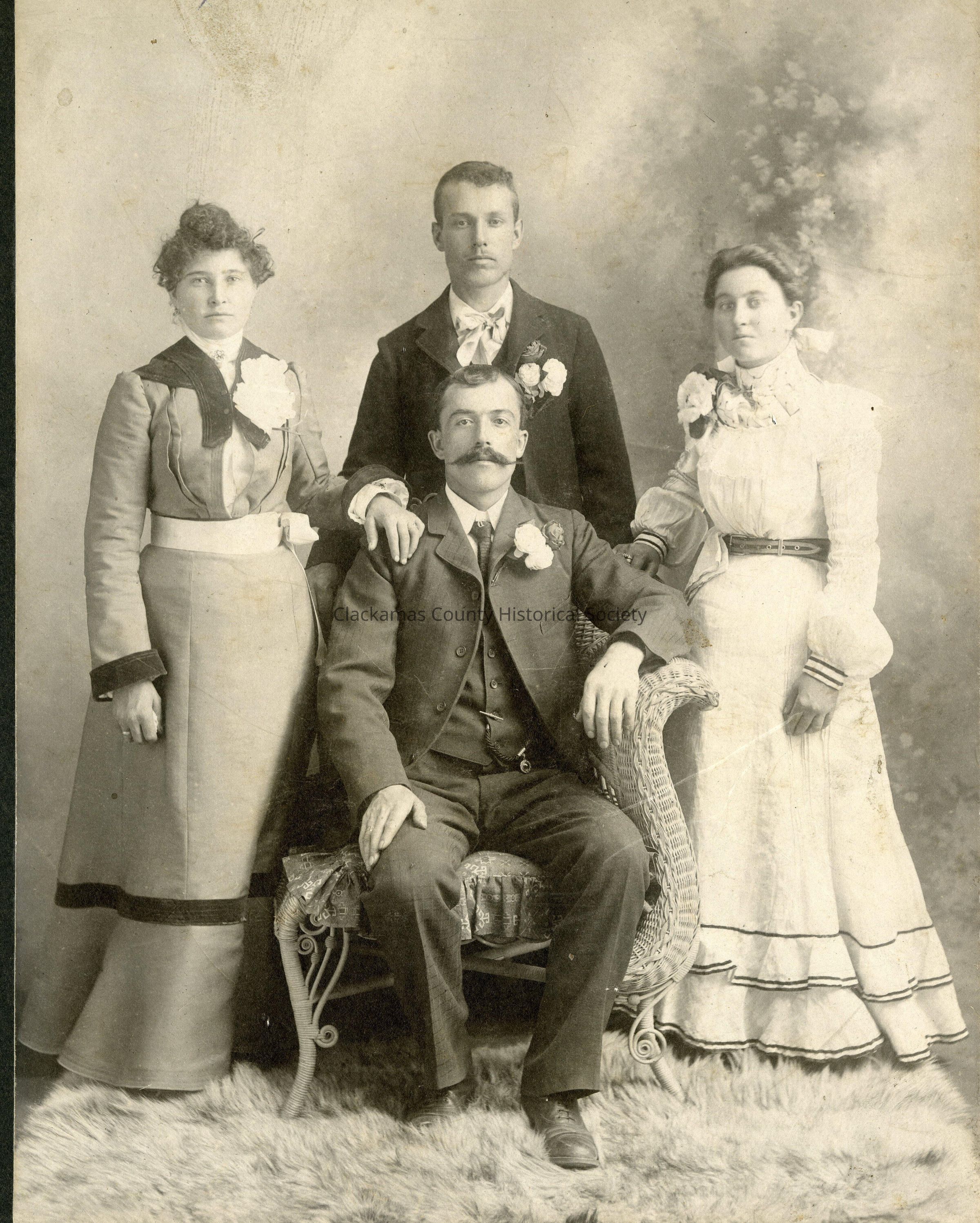 Wedding photo of Ark Angelo Vincenzi (seated) and Silvi Senechol (standing on right), August 1902