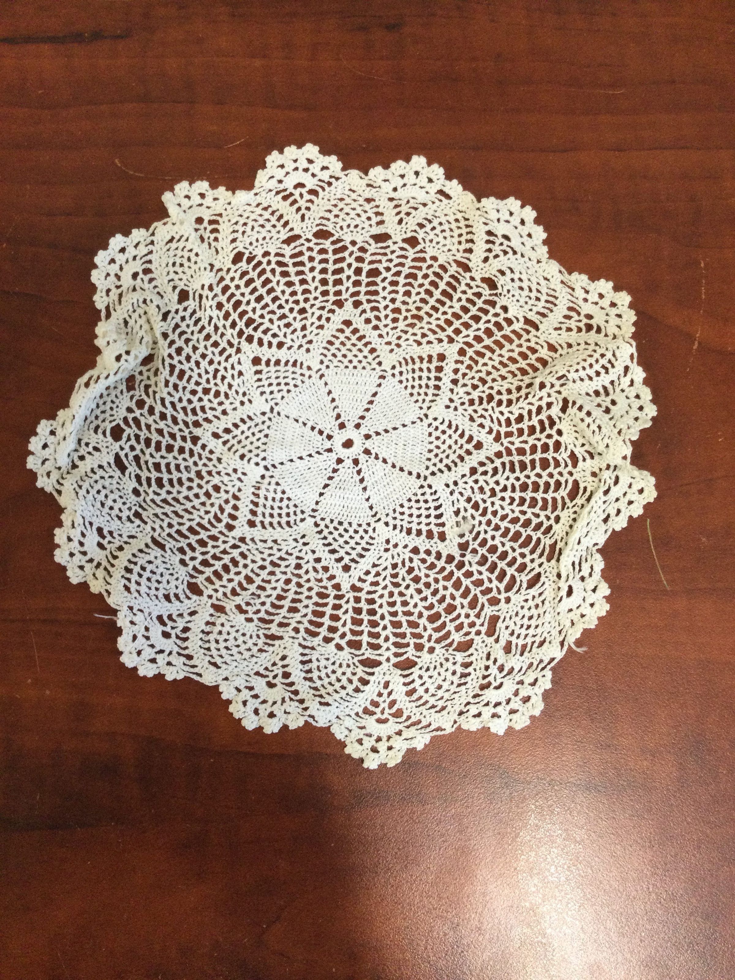 Medium sized white doily, finely made center. Evenly distributed and in good condition