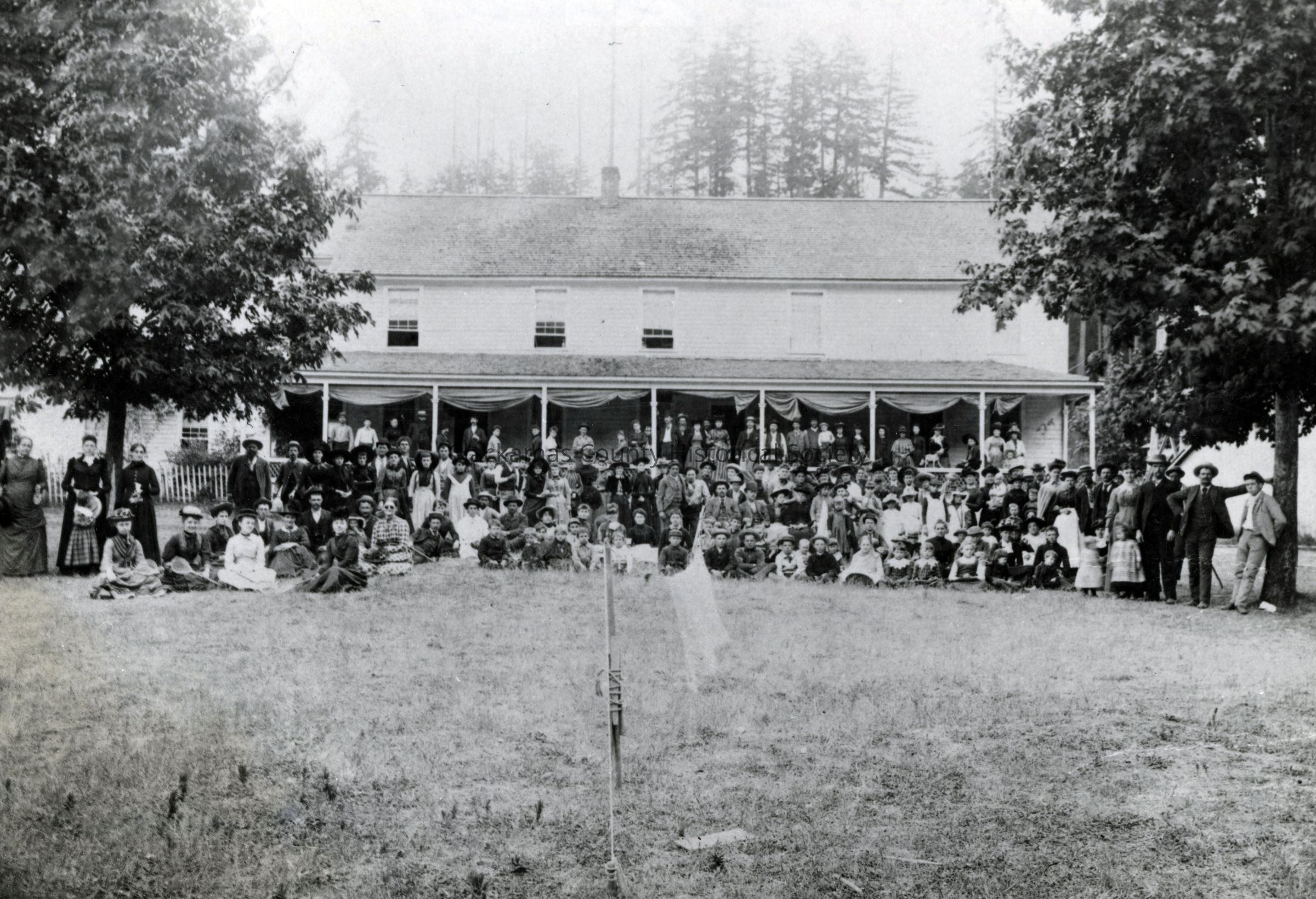 Wilhoit Springs Hotel, Oregon, 1890. The back of the photo indicates that this is possibly from the July 4th celebration in 1890. The back of the photo indicates that it is uncertain of the year but it is probably from the 1890s.Made/Created