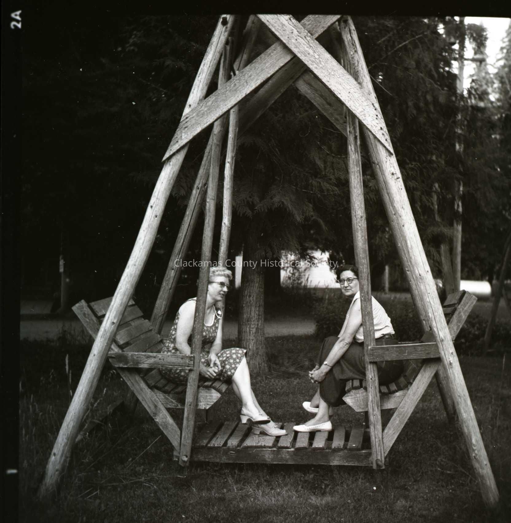 Wilhoit Springs Lawn Swing; Irma Sullivan (left) and Bernice Thomas (Right).Made/Created