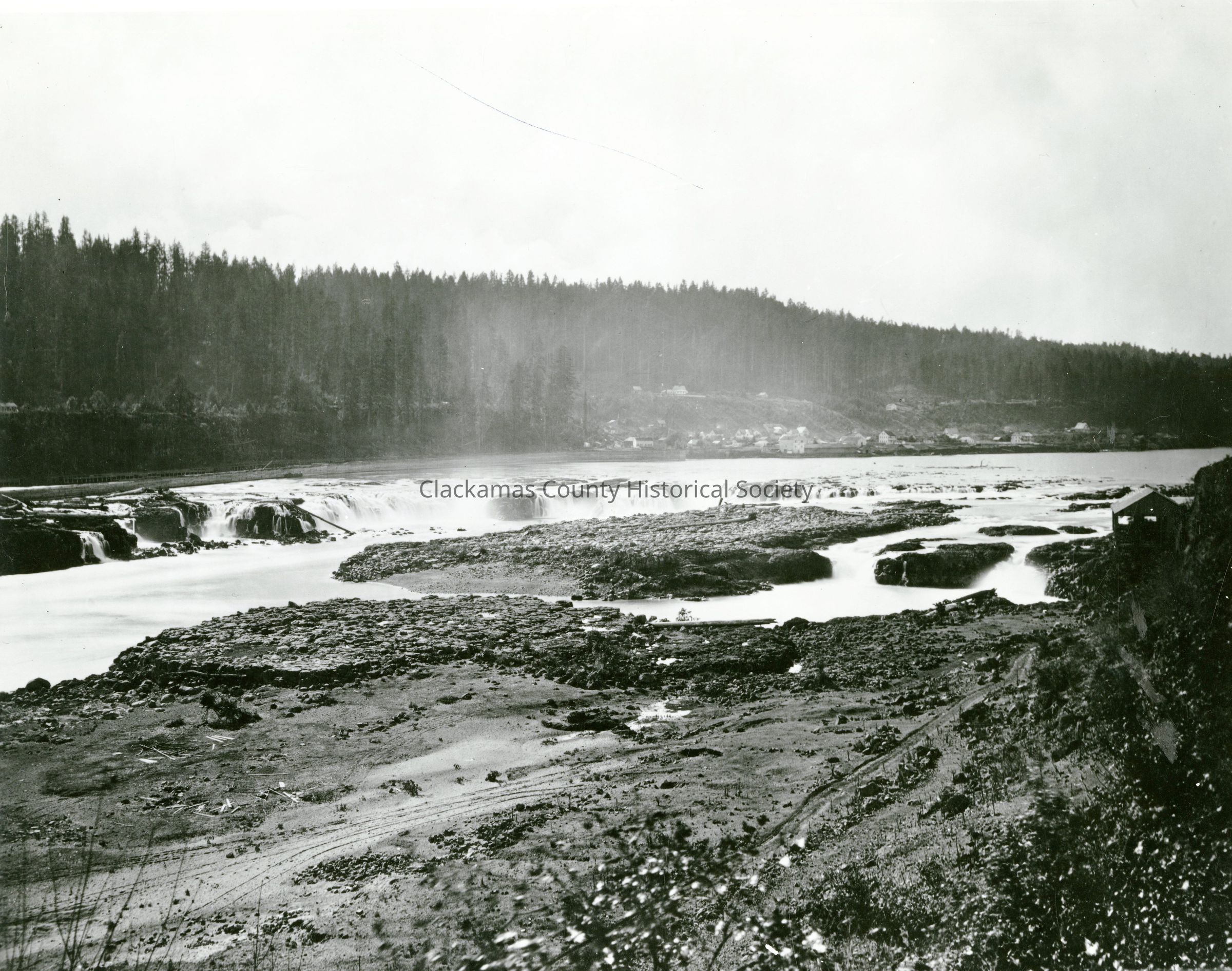 Willamette Falls, Canemah from Former site of Linn City By S.P. Davis from OHS Photo E.G. Caufield Collection 1867 Added Negative and Sample Print