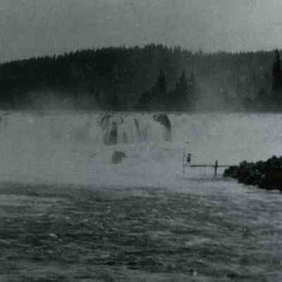 Willamette Falls, Native American on Fishing Platform 2. 1885Entry/Object ID