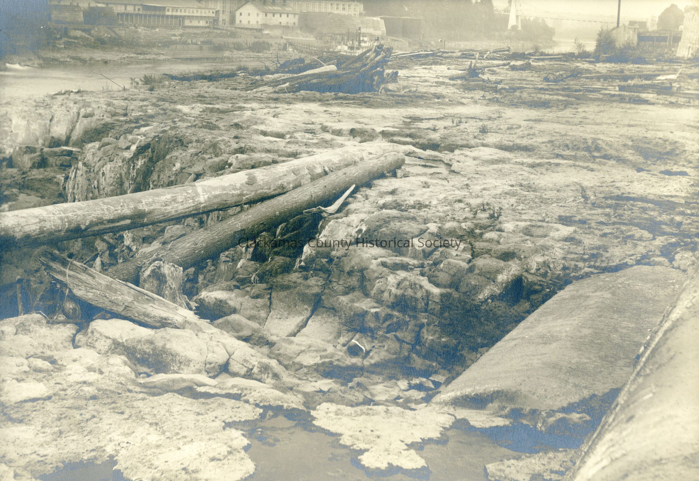 Willamette Falls Dam and Spillway Construction Willamette River Latourette Collection Note on Envelope also mentions 1896 Flood.