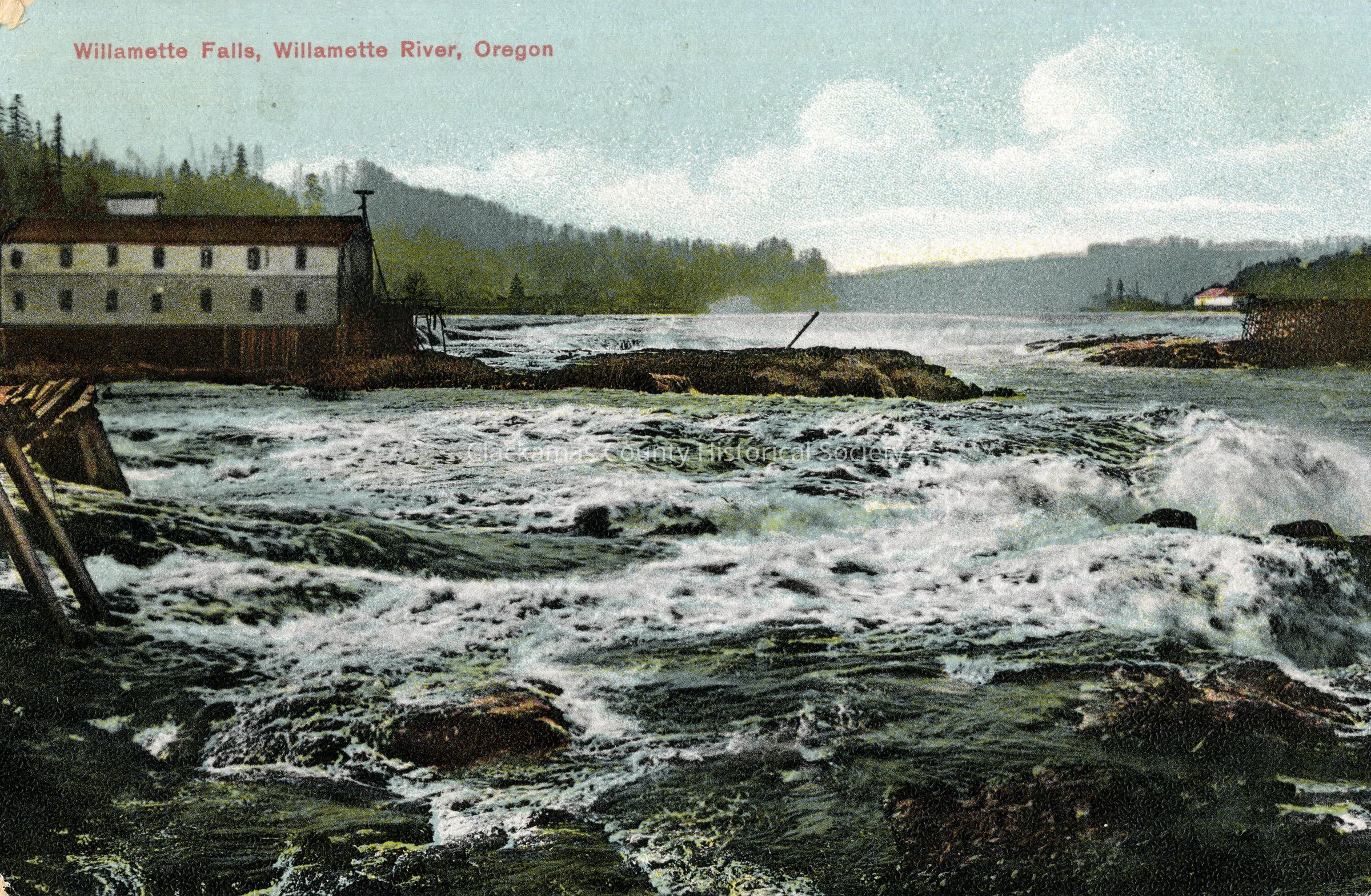 Past Card of the Willamette River Falls Oregon and Station A in 1912.