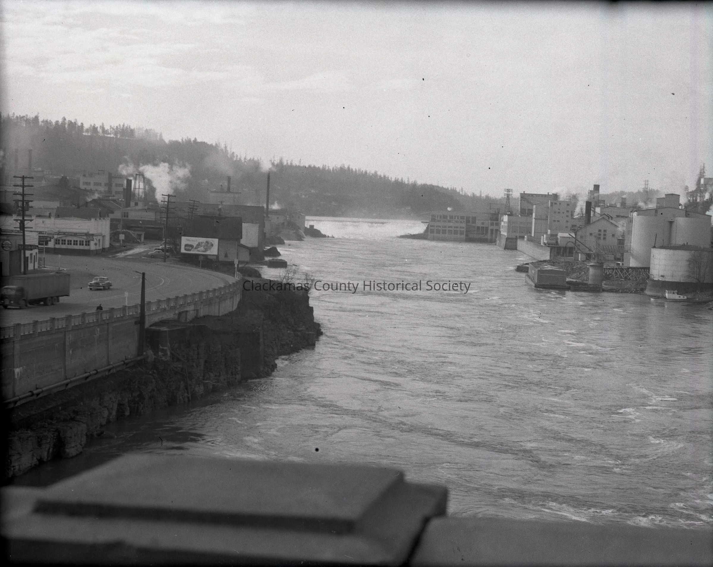 Willamette Falls and Mills from Arch Bridge, looking upriver.Made/Created