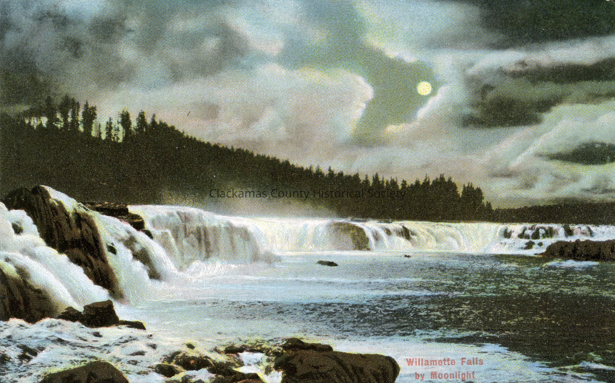 Willamette Falls By Moon Light - Colorized Oregon City Post Card