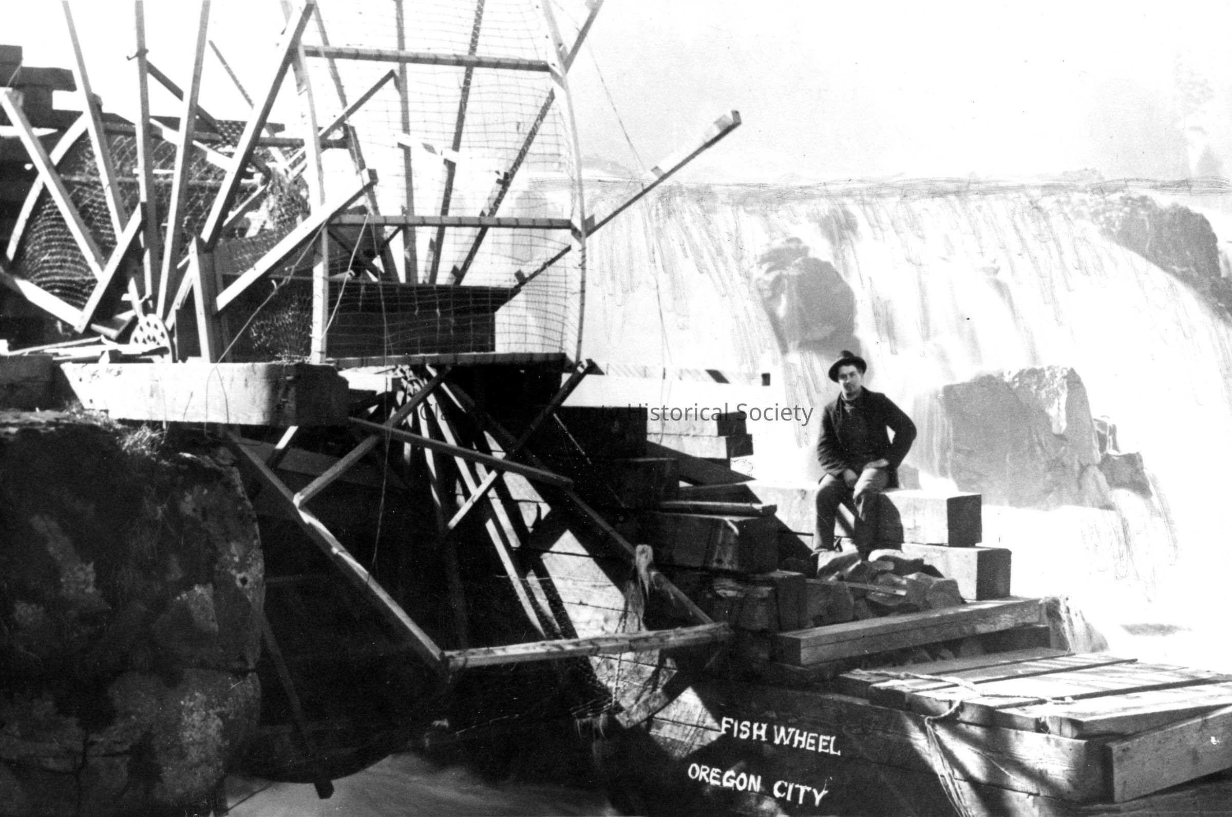 Willamette Falls fishwheel on Black Point, Oregon City, 1896.Entry/Object ID