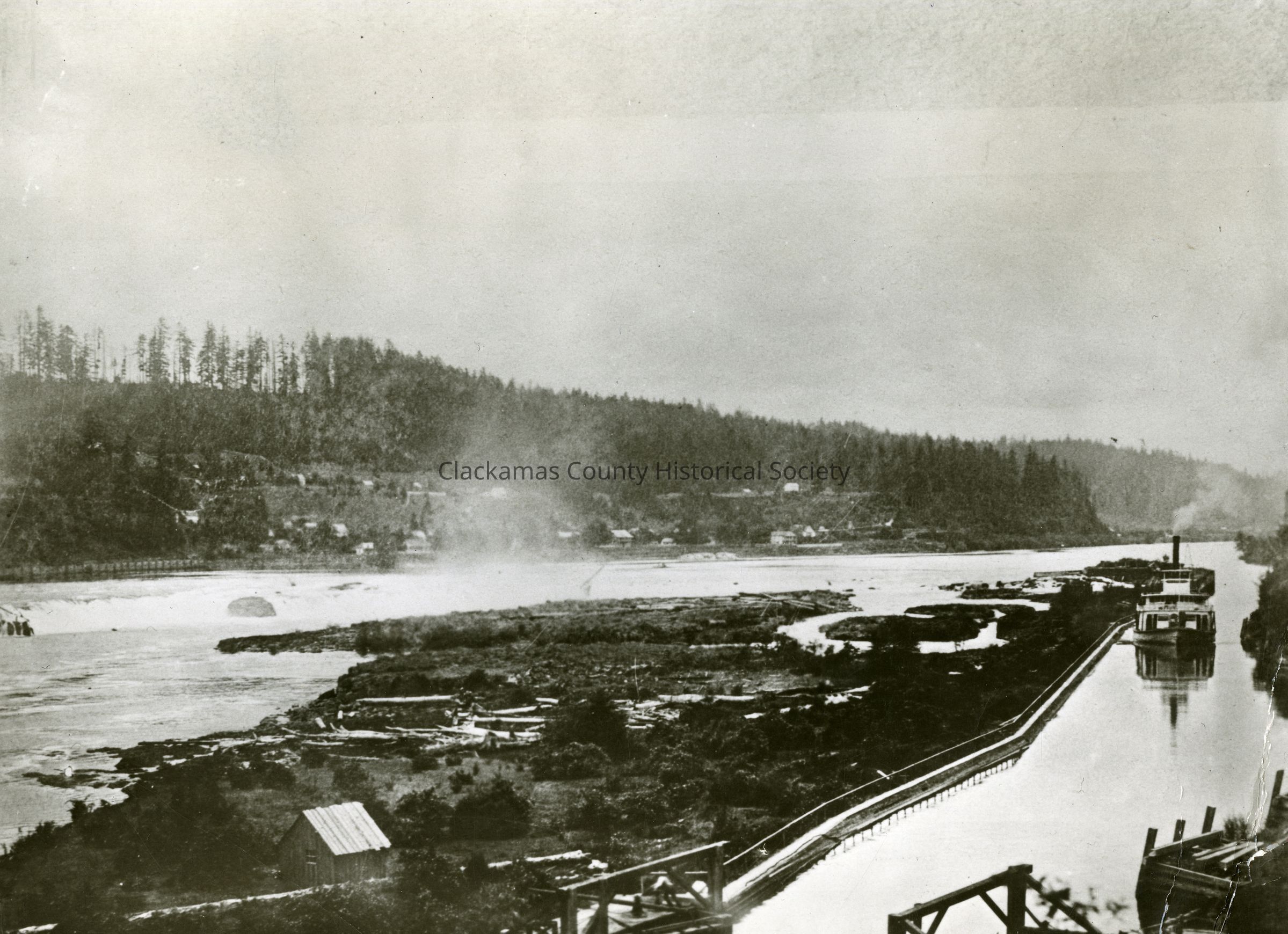 Willamette Falls Locks 1873 - with Steamboat "Maria Wilkins" - First Steamboat through the LocksEntry/Object ID