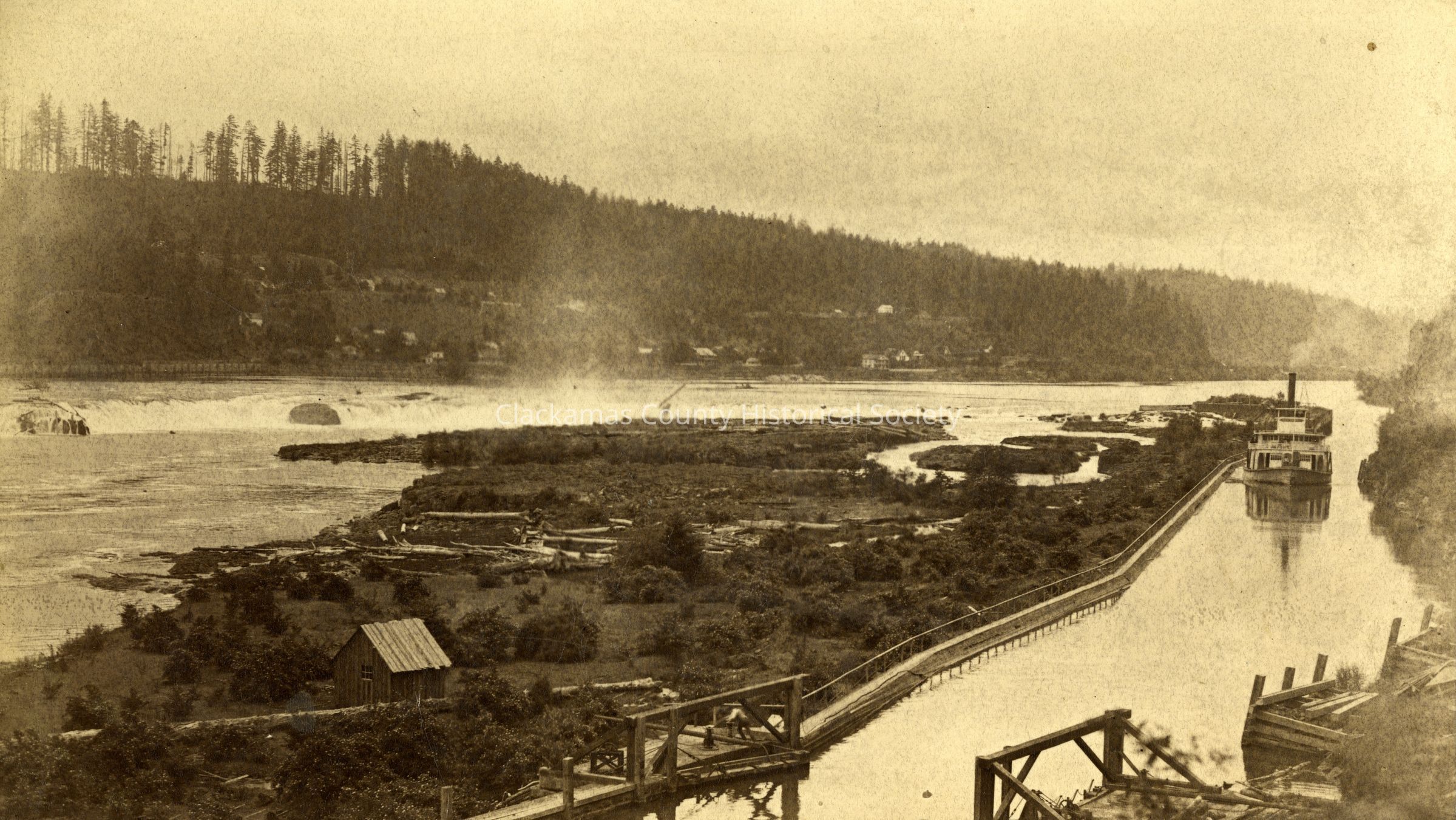 Willamette Falls Locks 1873 - with Steamboat "Marie Wilkins"Entry/Object ID