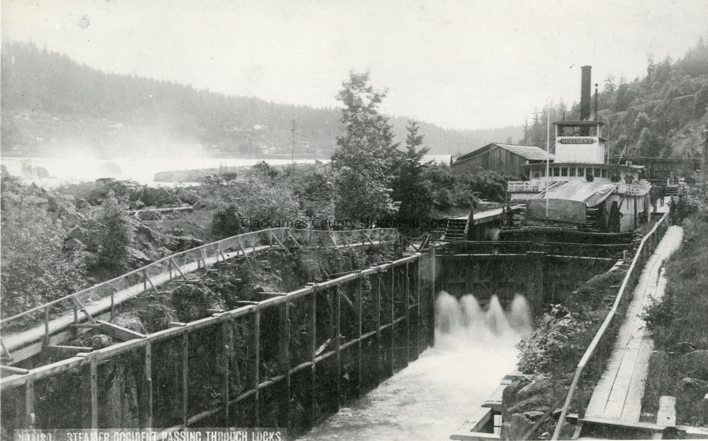 Willamette Falls Locks 1880 - with Steamboat "Occident"