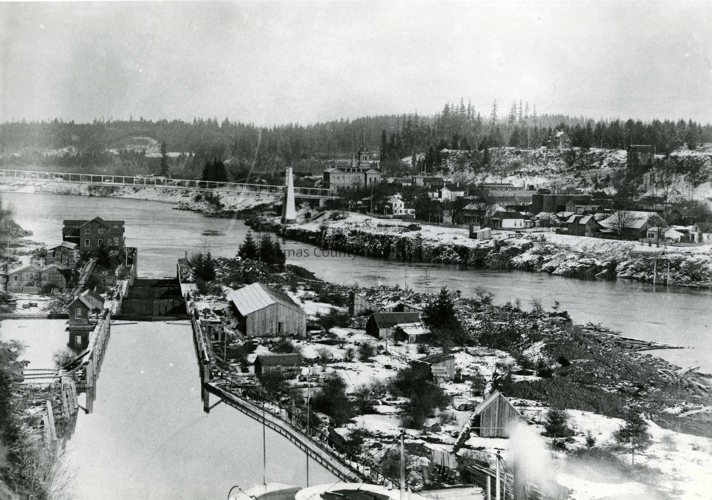 Willamette Falls Locks 1888 - Looking down river in winterEntry/Object ID