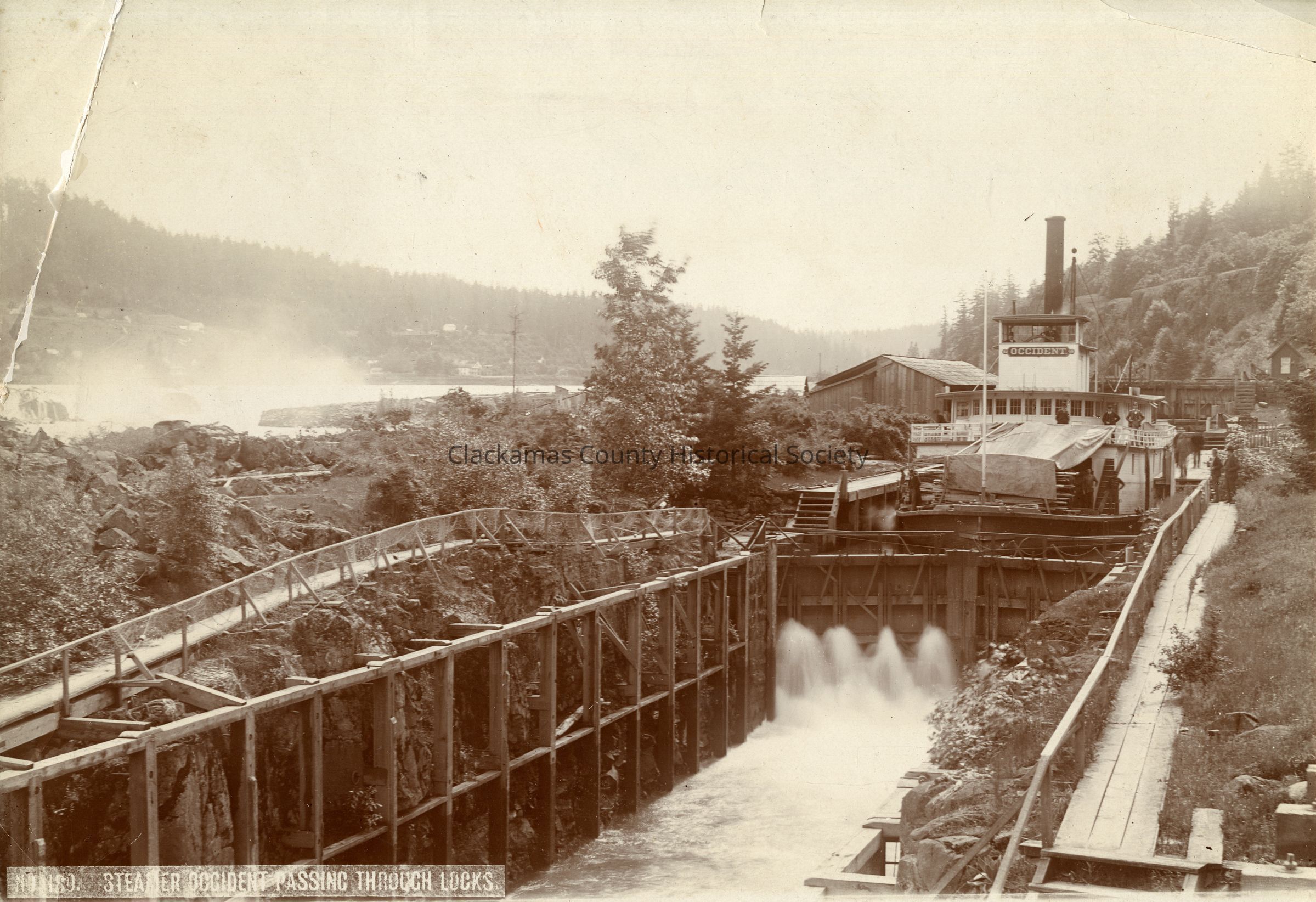 Steamboat "Occident" in Willamette Falls locks West Linn Government Locks Neg. Gardner #75 Ely Cross #2