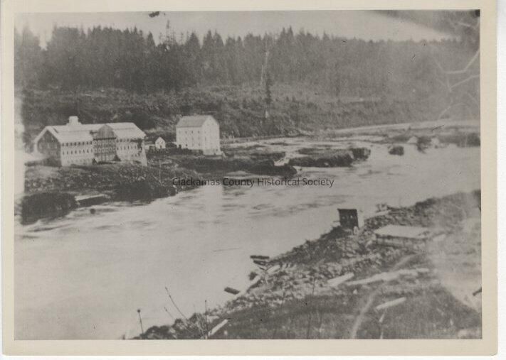 Oregon City Woolen Mill Imperial Flour Mill Willamette Falls from West Linn 1868