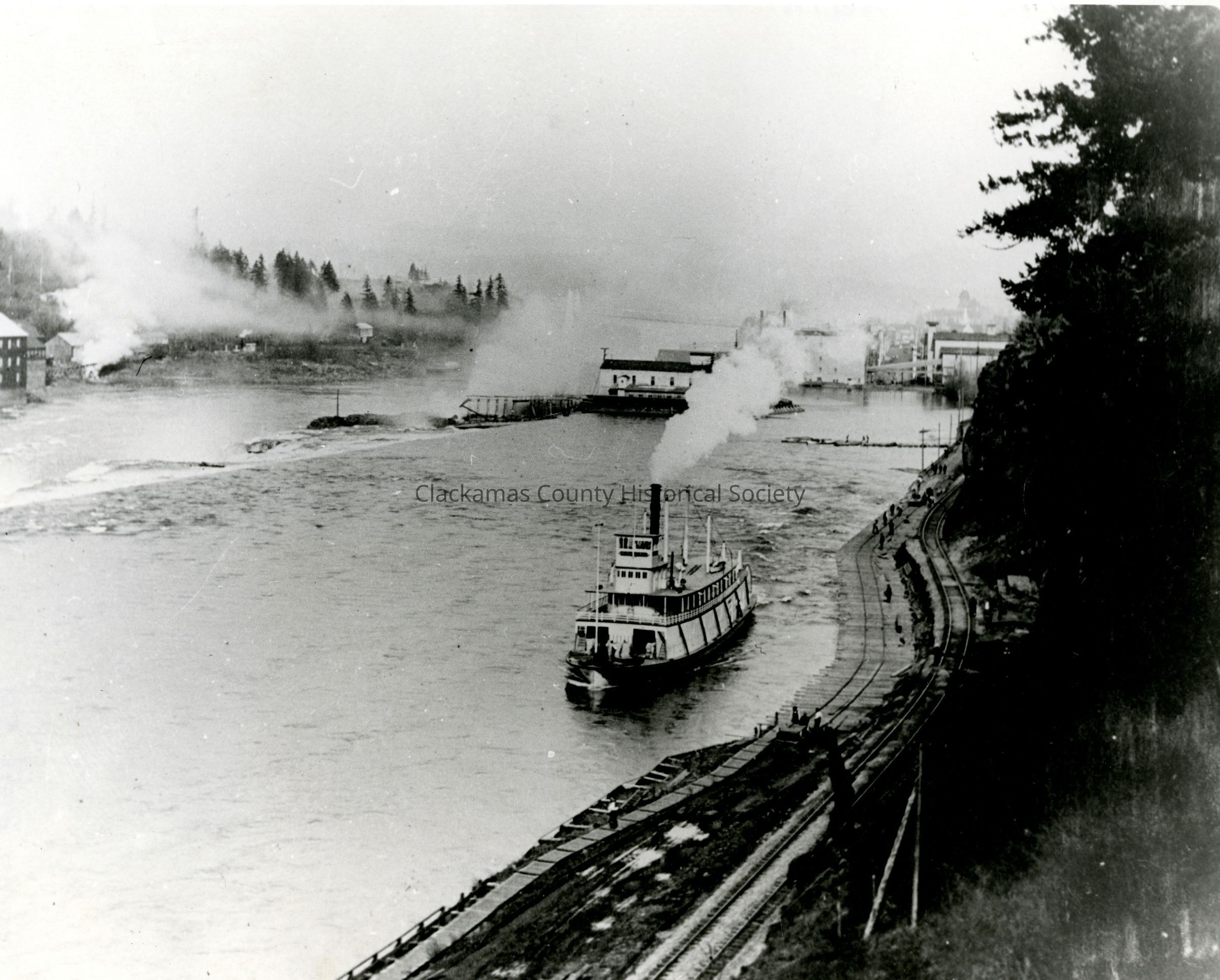 Willamette Falls - Steamboat "Canemah" - Railroad Tracks - Oregon City and West Linn Oregon - 1901Entry/Object ID