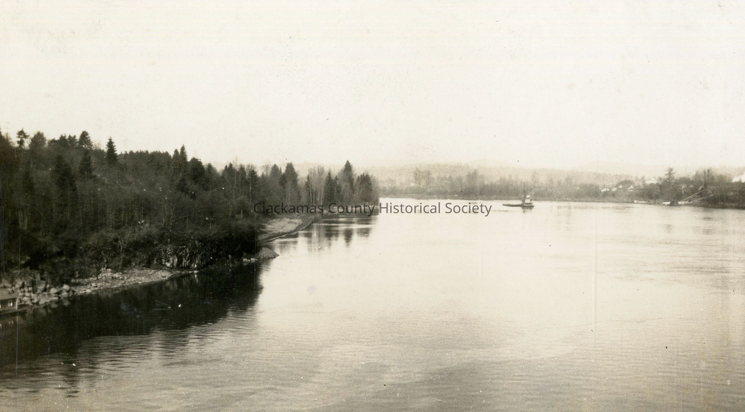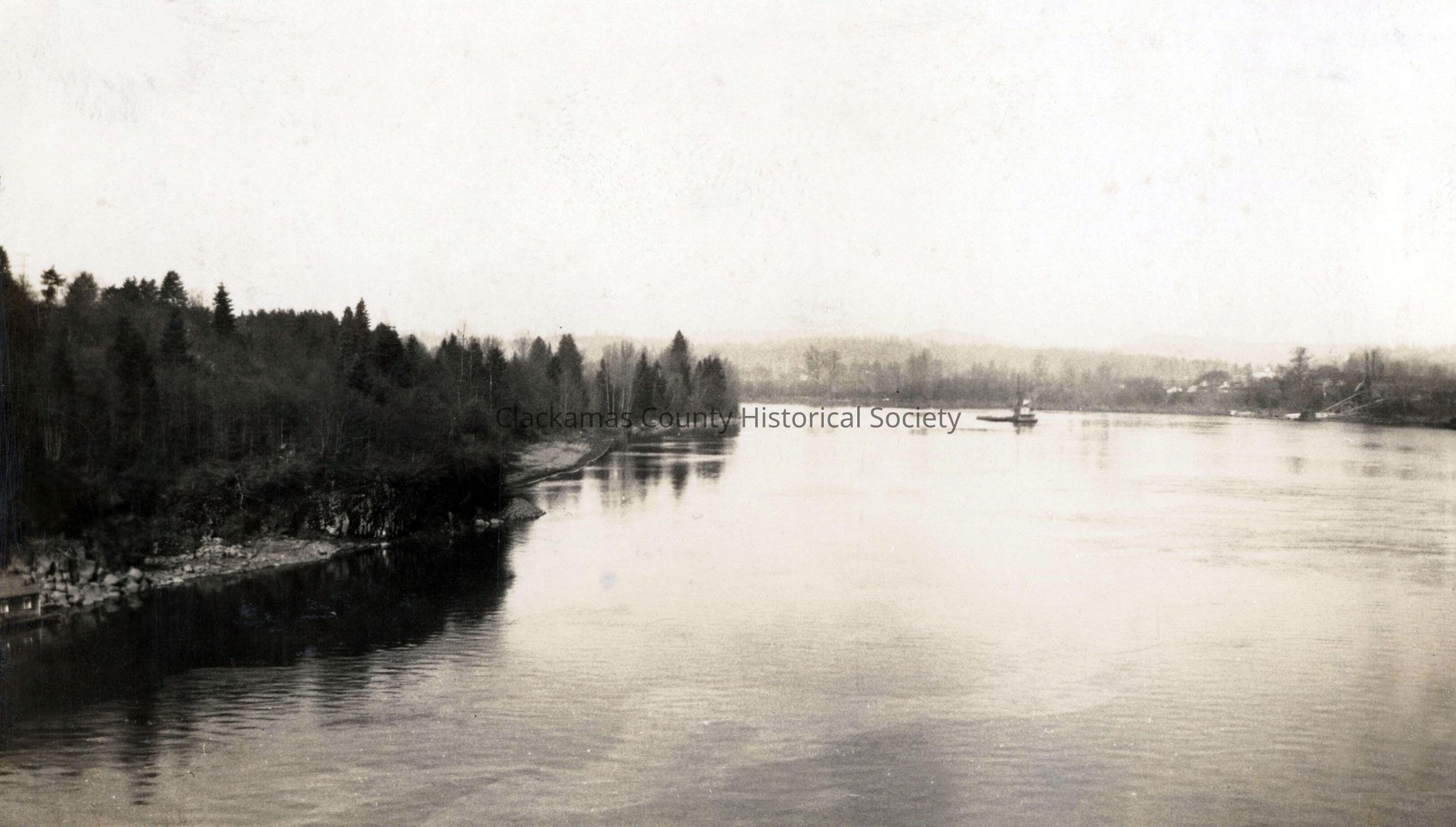 Willamette River Looking North from the West Linn-Oregon City Bridge. Possibly taken 1919 and is a companion photo to P-1224.Made/Created