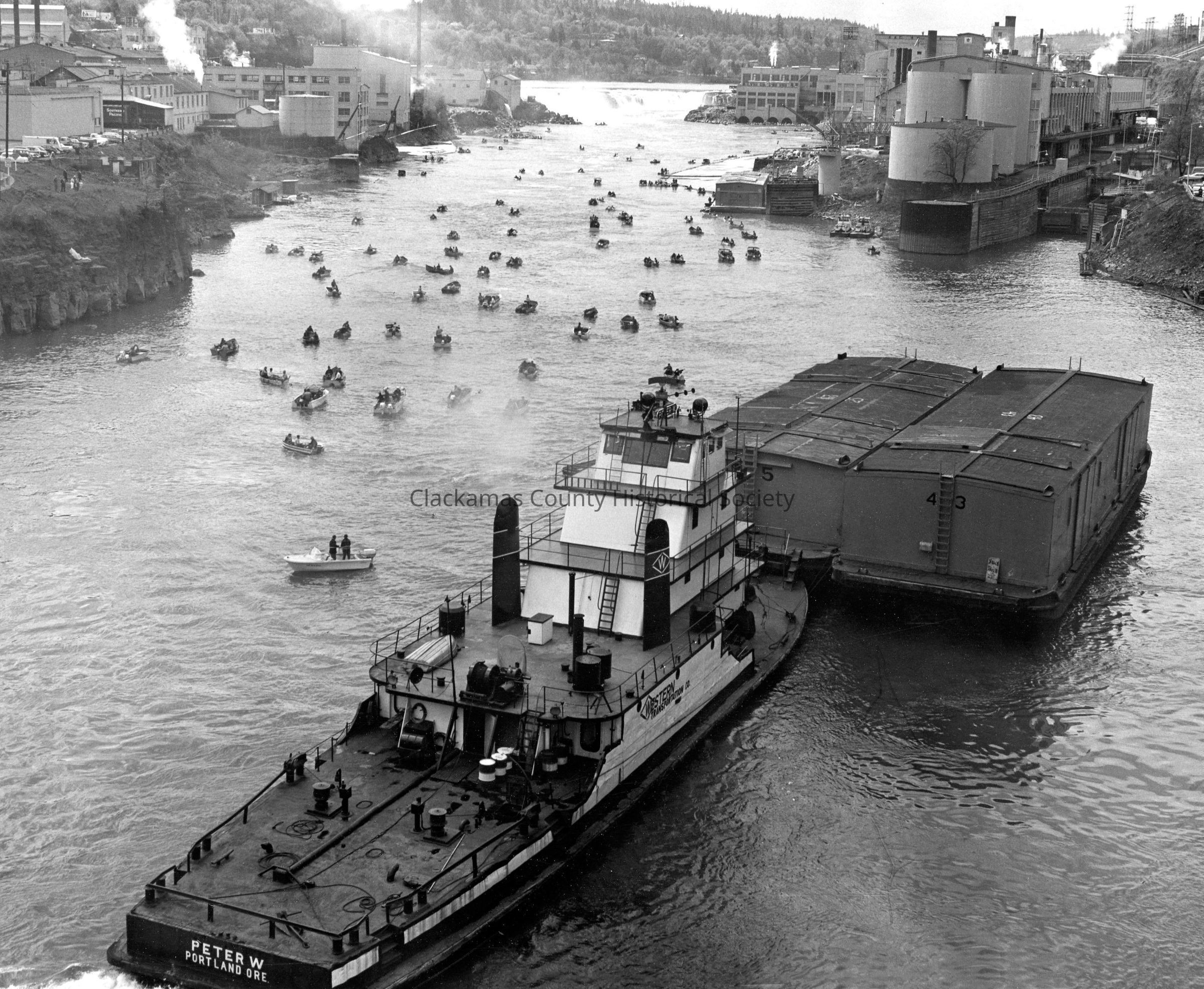 Willamette River 1950's - Fishing, Willamette Falls and Lock. Peter W. Tug Boat and BargeEntry/Object ID