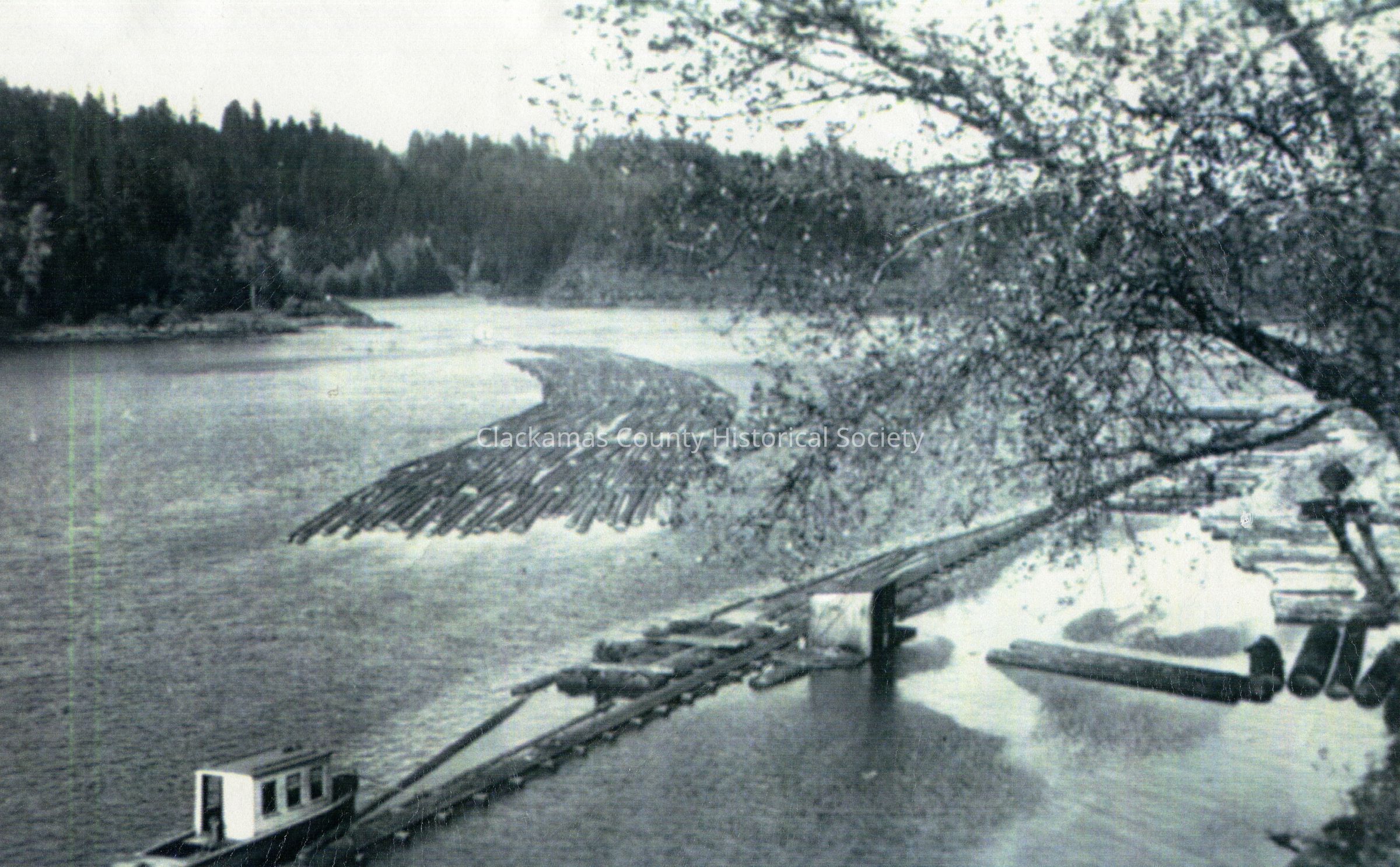 Willamette River Oregon 1940's - Log Raft at Rock Island