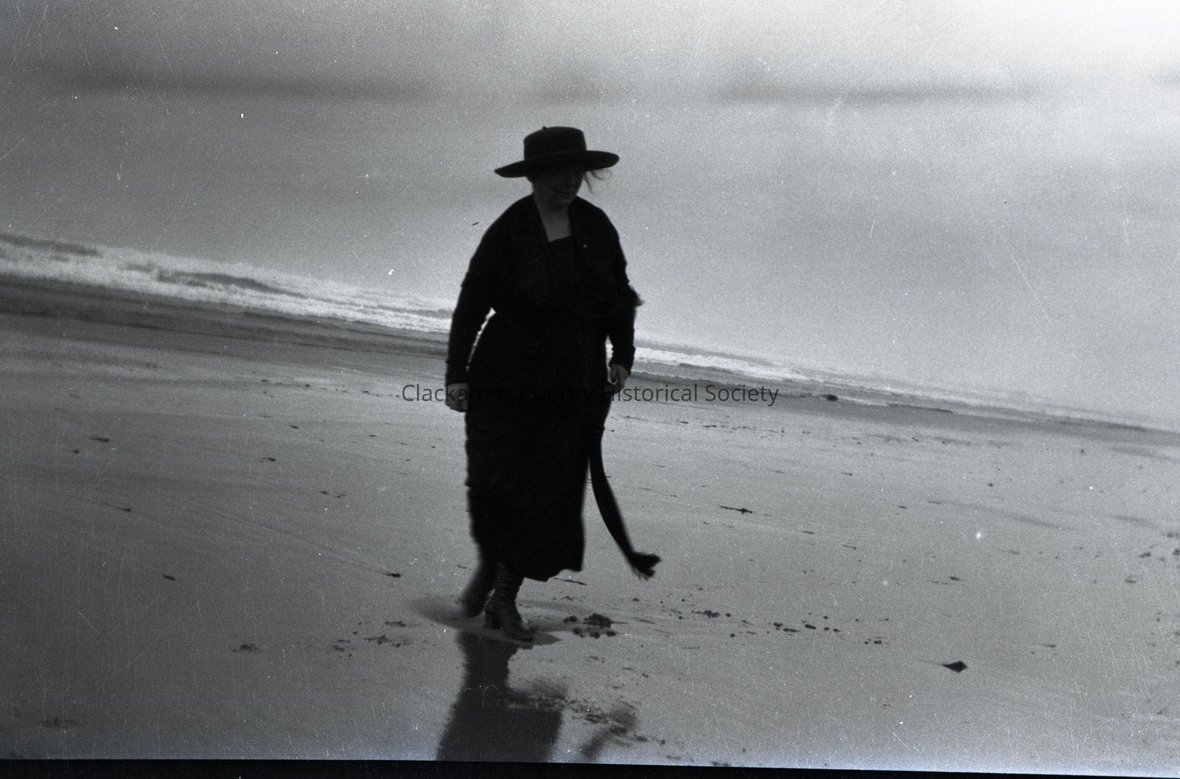 Woman in Hat Walking in Surf at Beach. (envelope unmarked)Made/Created