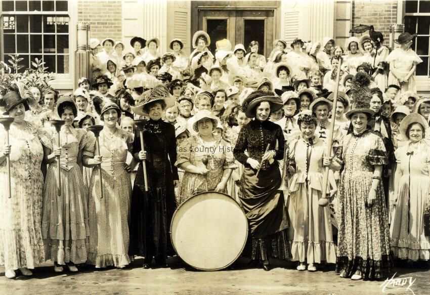 See attached article from the Third Annual "Territorial Days" Souvenir Edition, 1937. The photo is not from Territorial Days. The dark dress with buttons to the right of the drum is in the CCHS collection - accession 2019.005.340 JAH 12/2022.