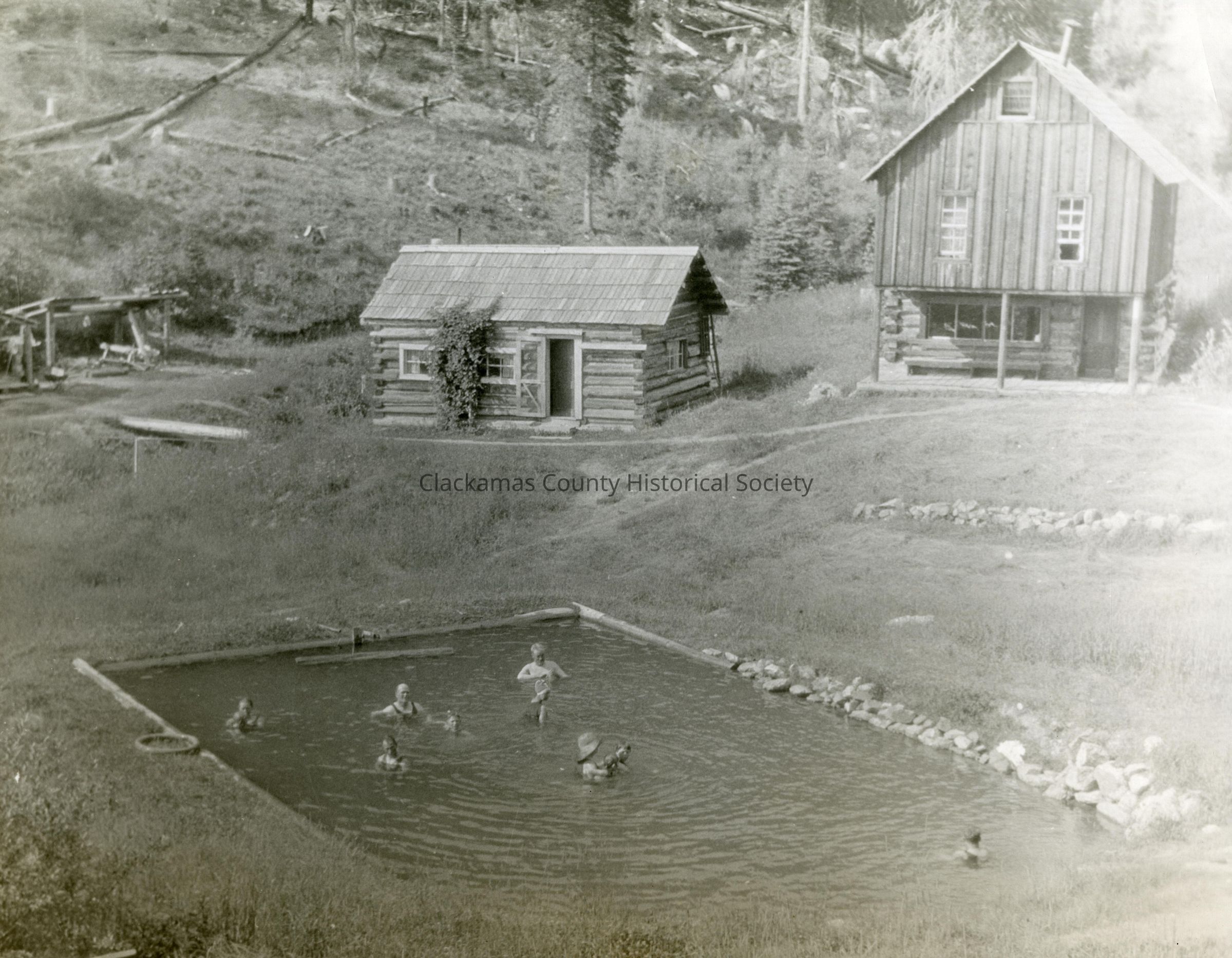 Wooden Buildings Swimming Pool People in Pool Gift of Robert Barnett