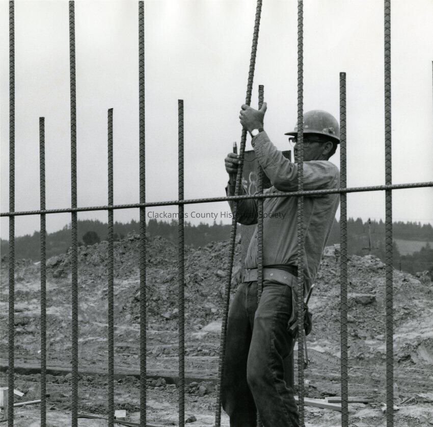 Worker with Steel Reinforcement for Concrete, I-205 Bridge Construction.Entry/Object ID