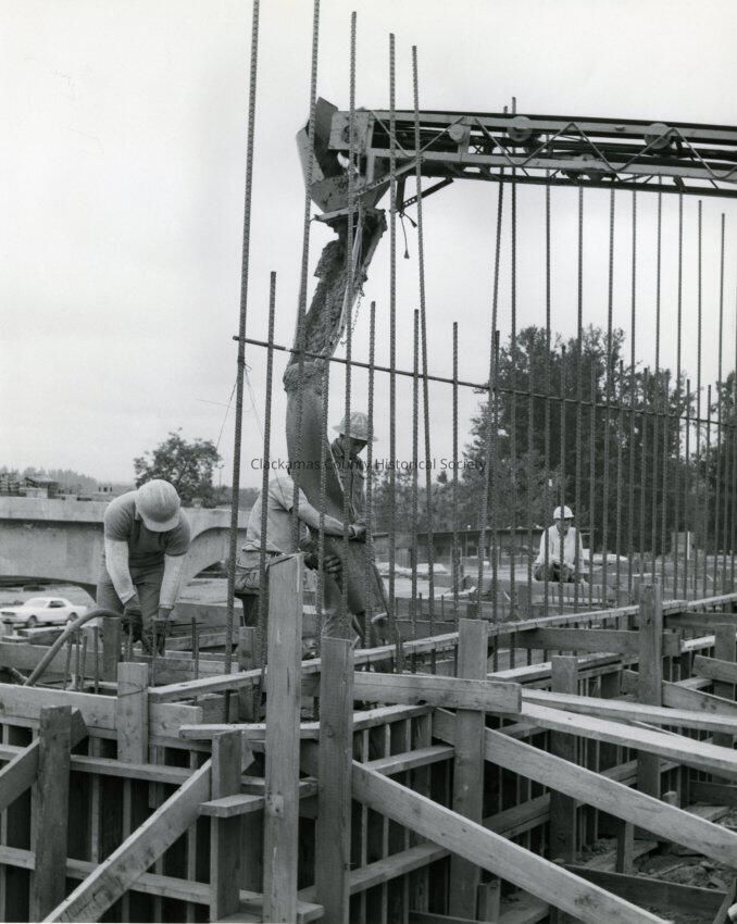 Men during Concrete pour, I-205 Bridge Construction.Made/Created