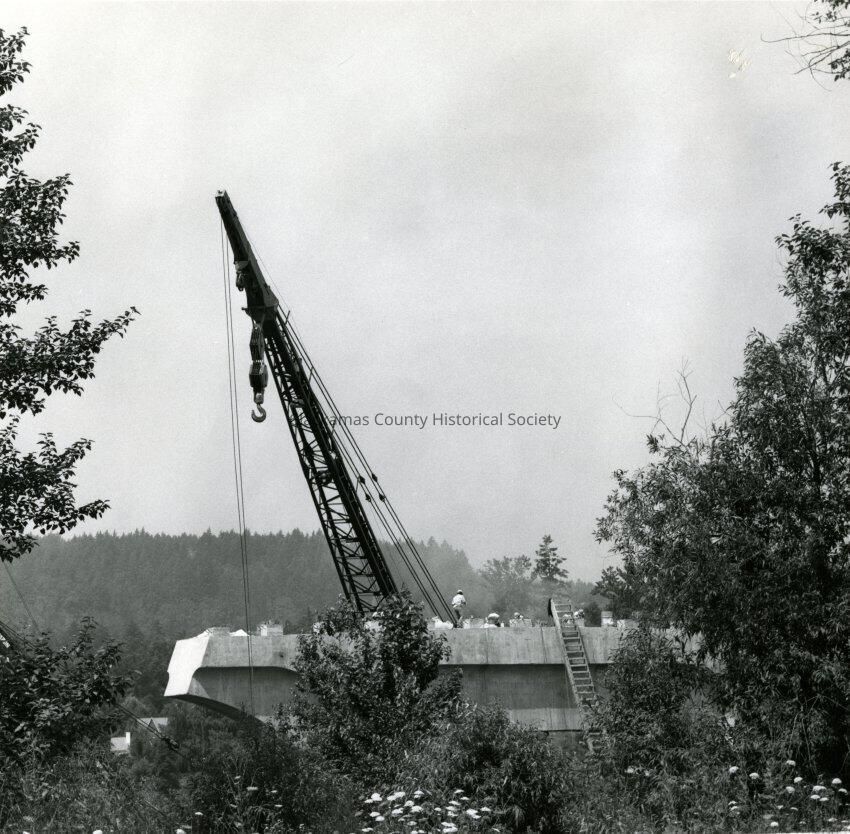 Workers, Crane and Concrete, I-205 Bridge Construction near West Linn.Made/Created