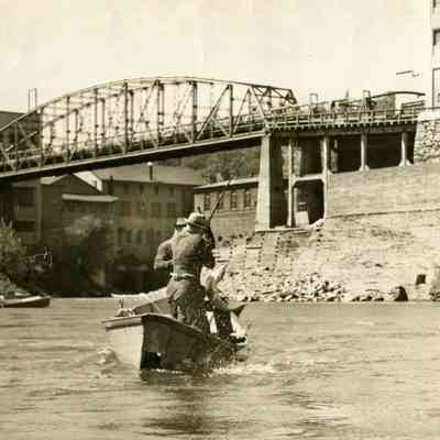 "Monticello" barge working on rescue of Sea Scout Boat "Chinook" - Willamette Falls - 1952