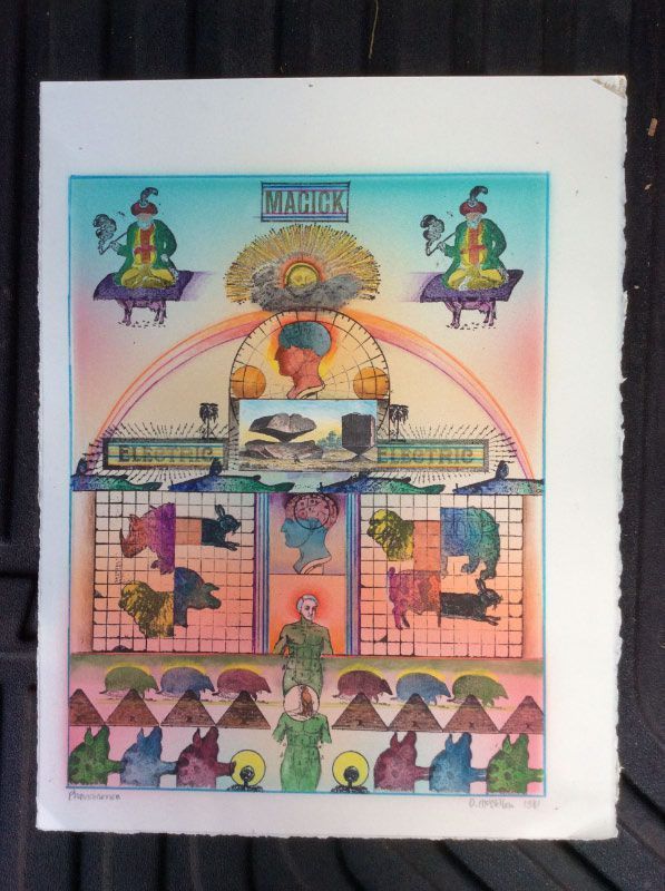 Stamp art piece with MAGICK at top, Arches paper, unframed