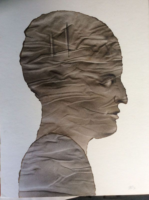 Airbrush, Burnt paper collage, heavy poster stock