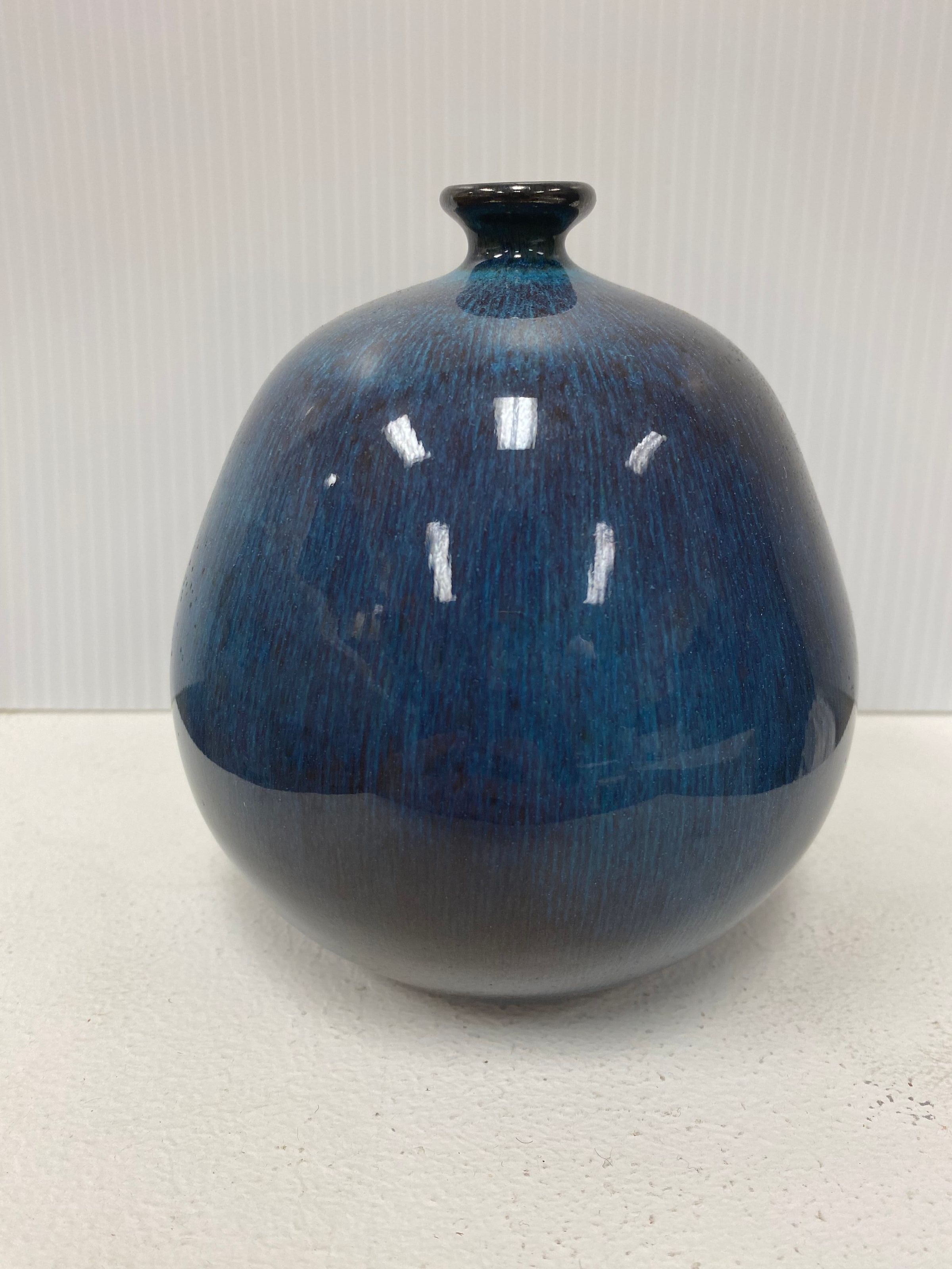 (Spherical blue bottle with narrow mouth)