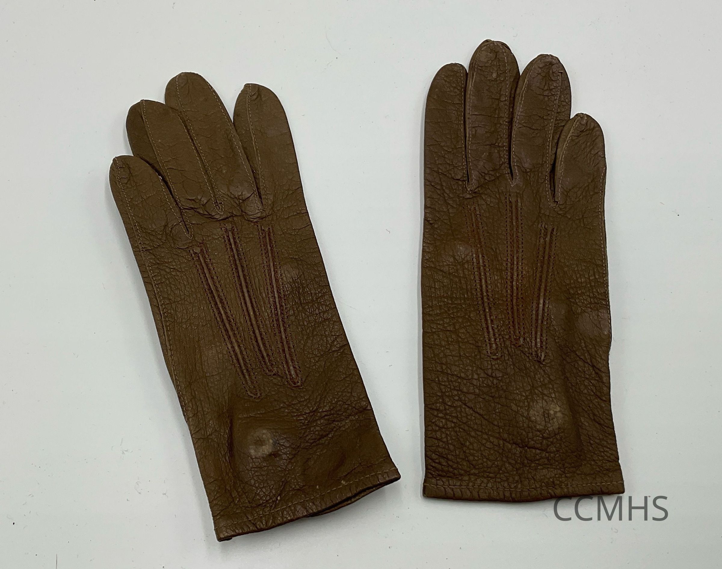 Dark brown leather gloves.