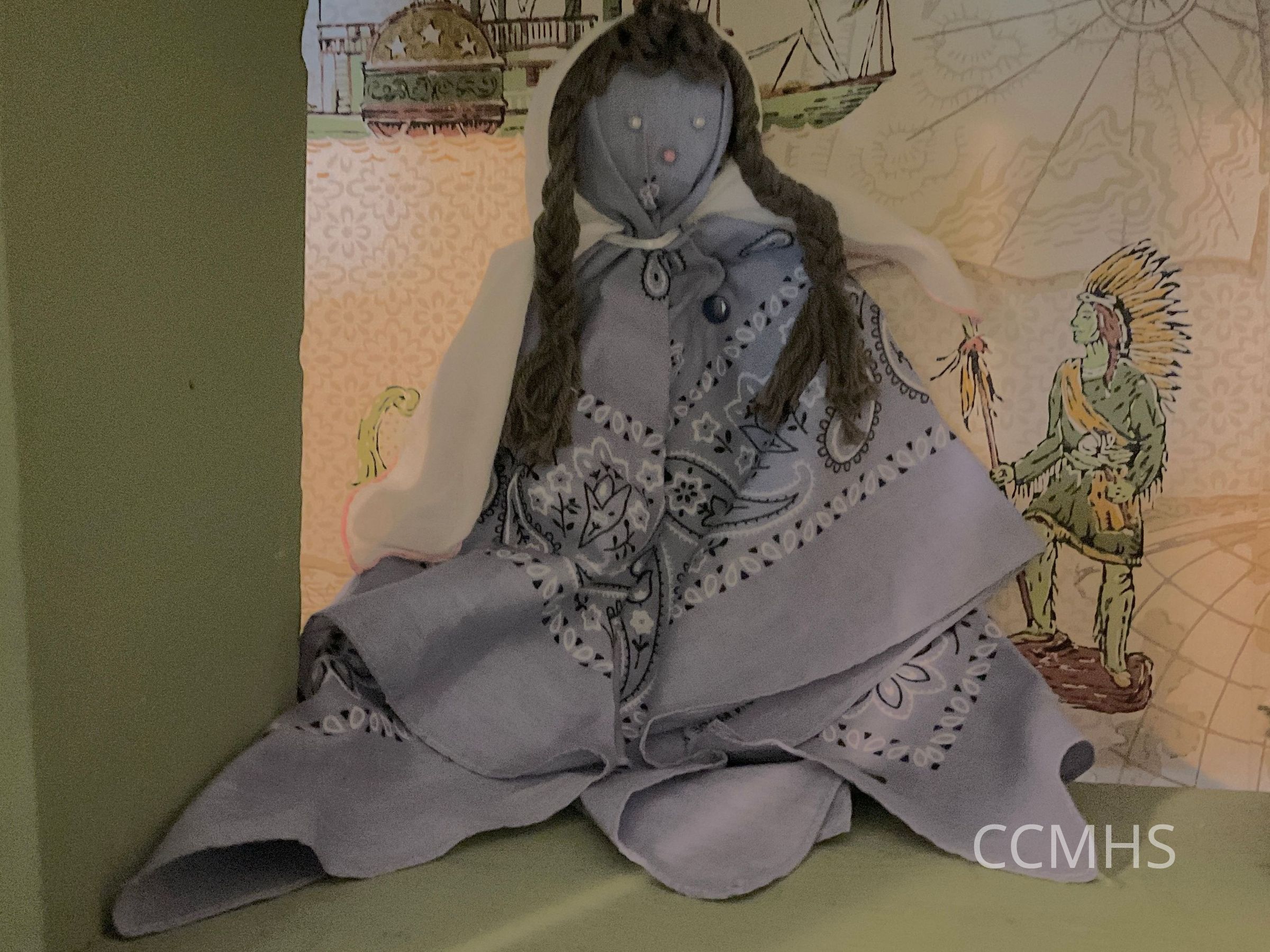 Doll made from a gray handkerchief.