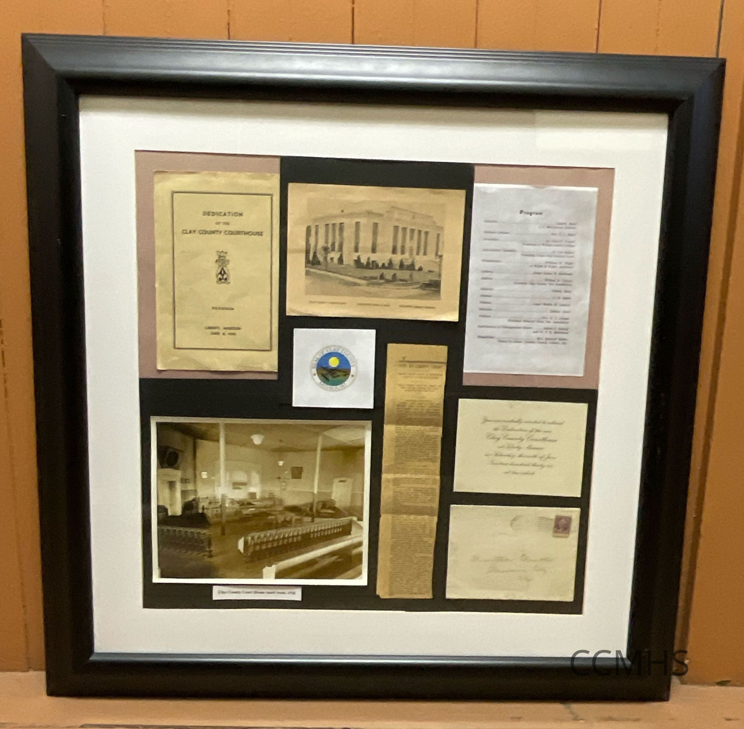 Includes a program, newspaper clipping, and an invitation from the June 1, 1936 courthouse dedication, and a photograph of the old courthouse court room dated 1934.