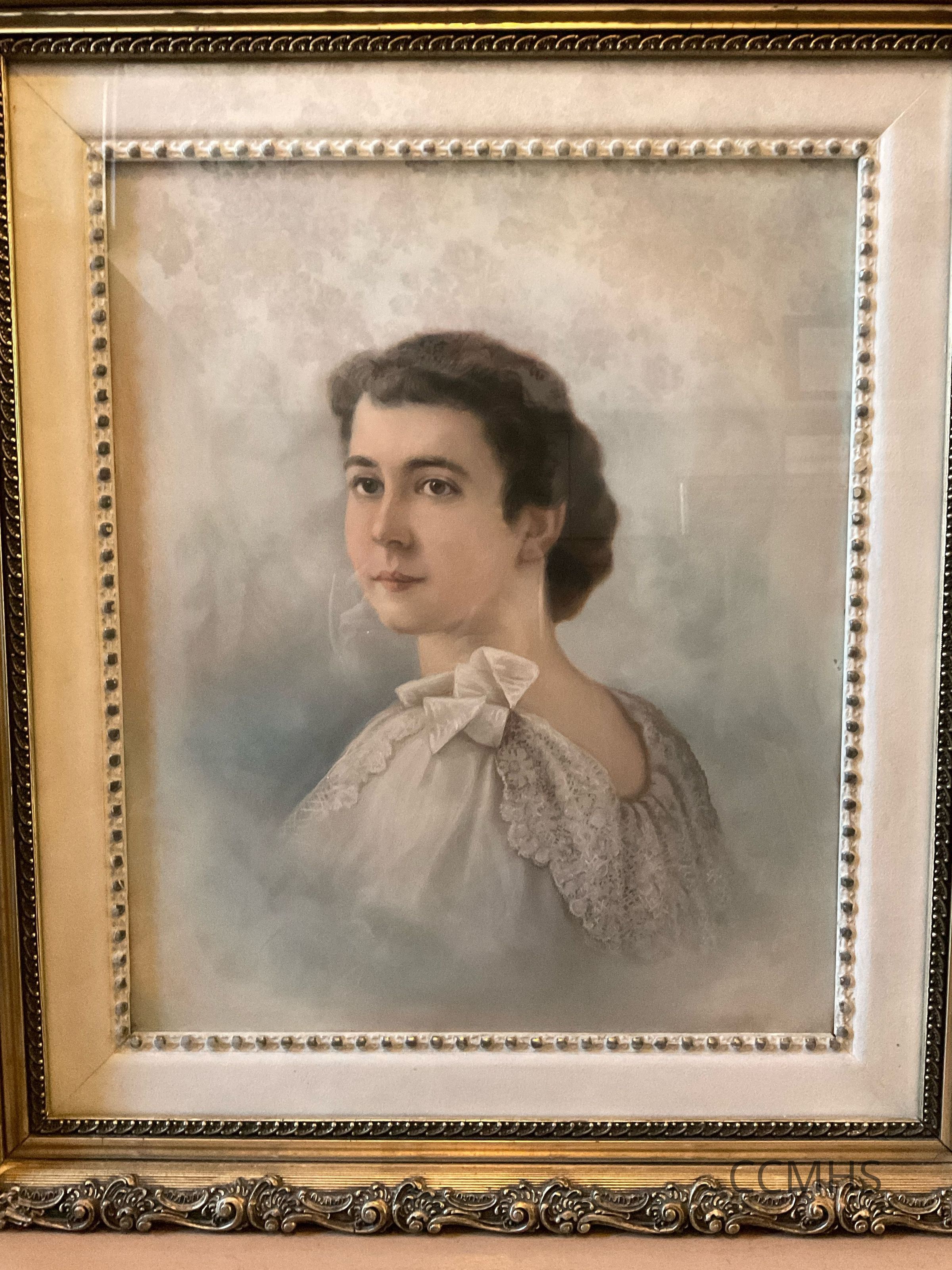 Framed pastel portrait of Anne Mall Russell.