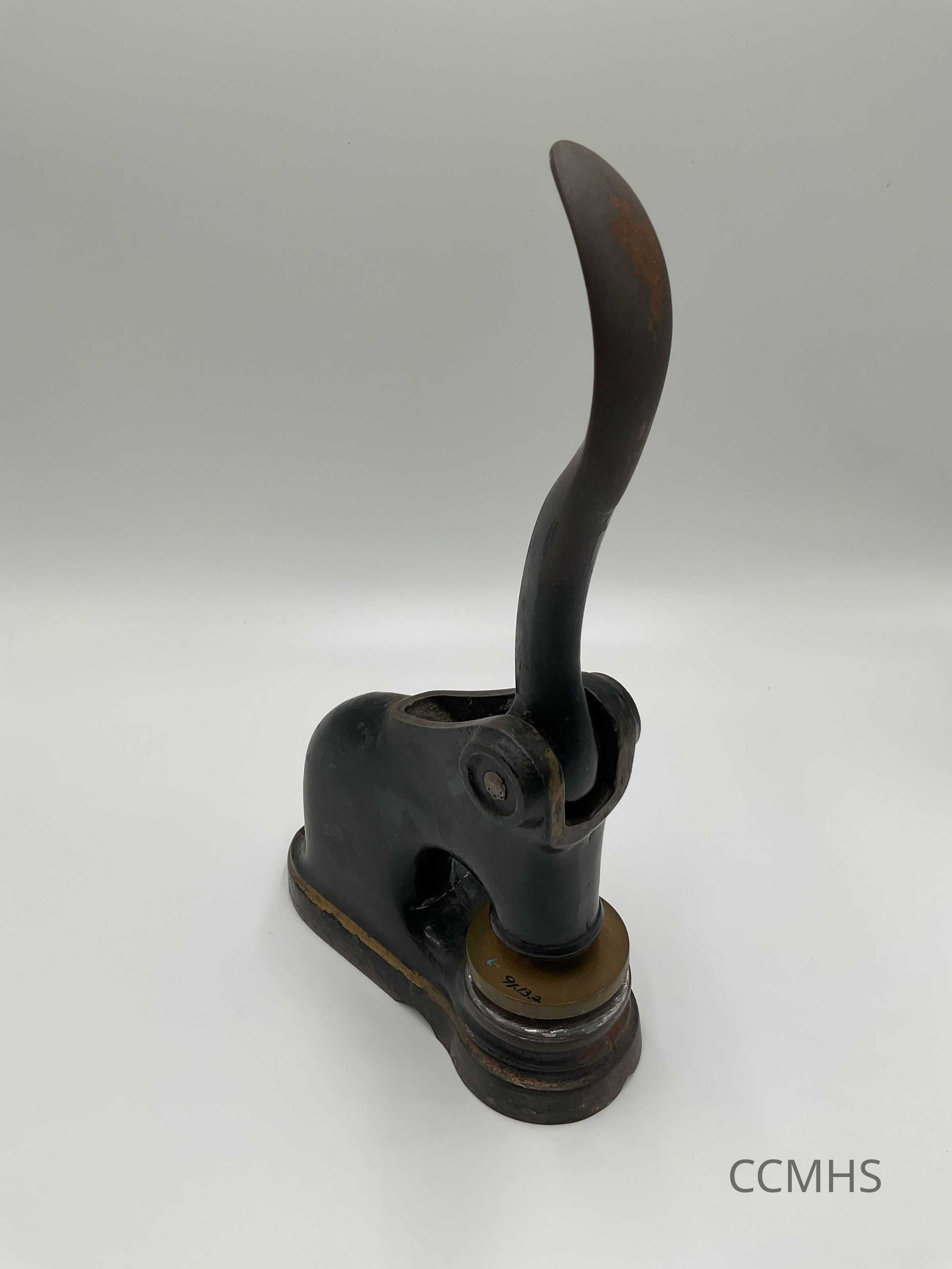 Metal press used to emboss seals into official documents.