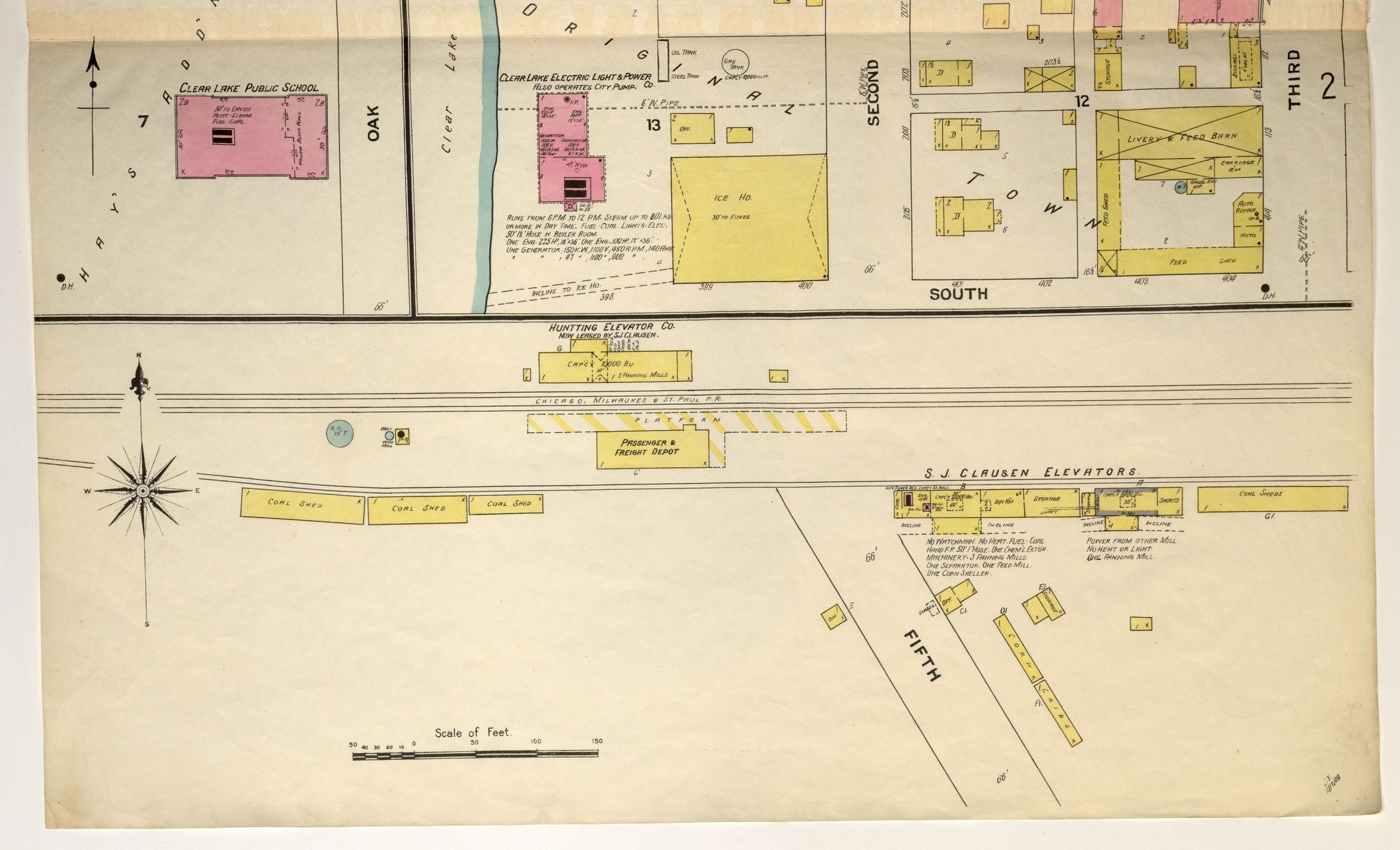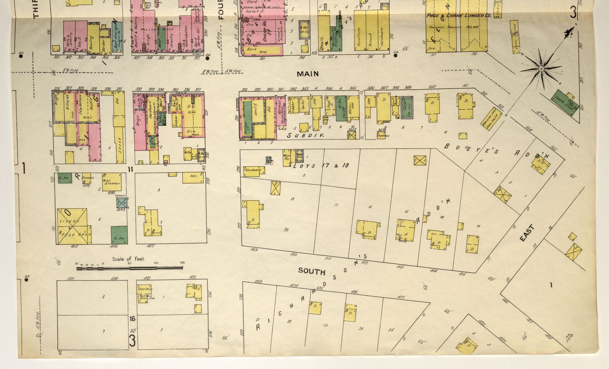 1909 Sanborn map showing downtown and major businesses